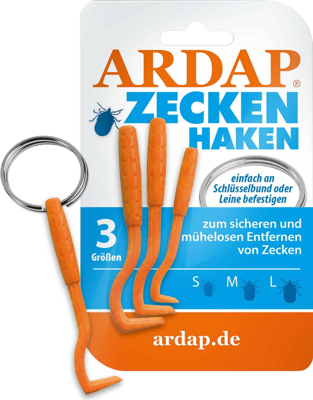 The Tick Remover Set by Ardap offers you 3 tick removers in different sizes for small and larger ticks. The hooks ensure safe tick removal and can be conveniently attached to your keyring or dog lead. This way, you always have them with you and can remove ticks immediately.
