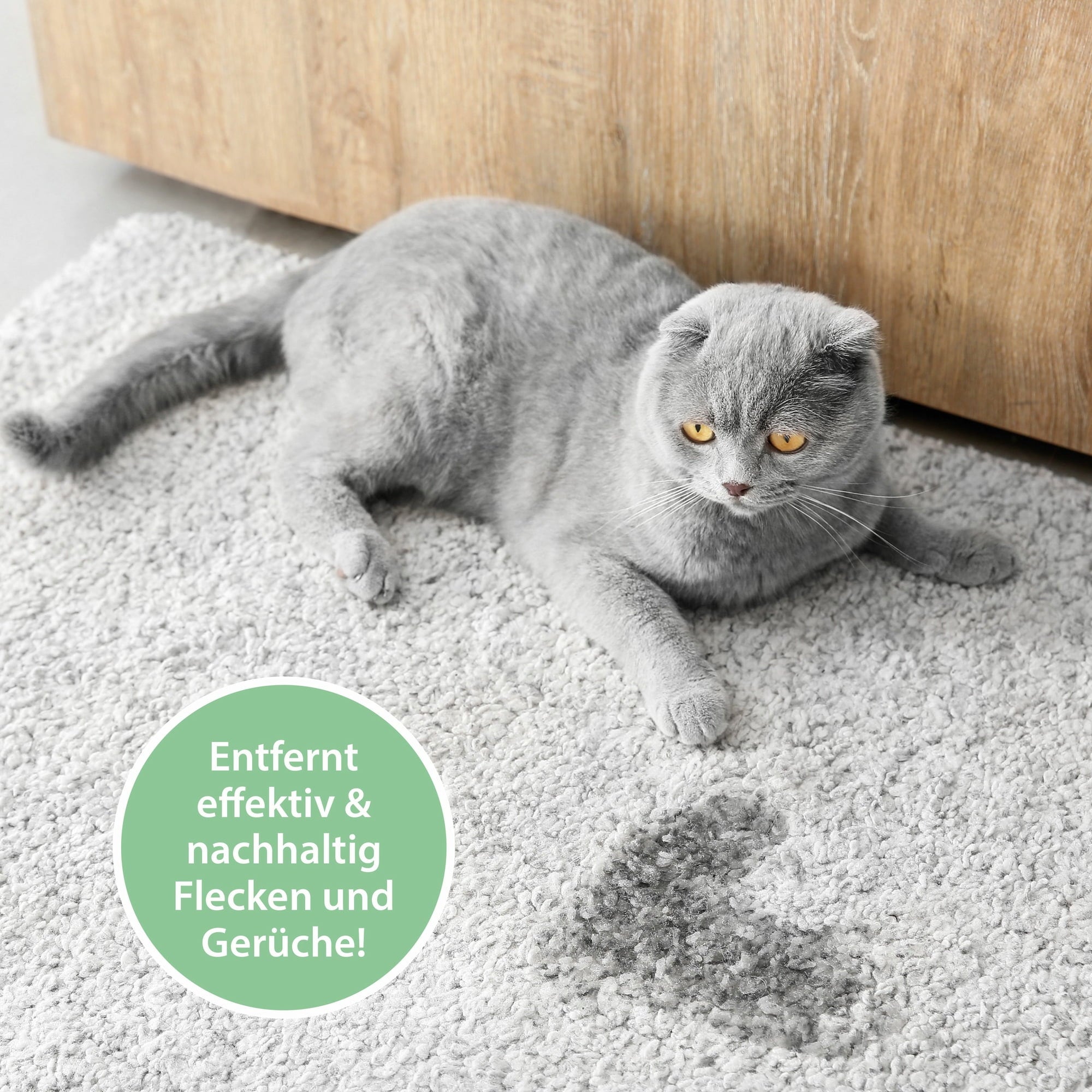 Healthy cats are naturally clean animals, but mishaps happen to even the best! With the effective cleaning agent from ARKA, you can easily and permanently remove stains from faeces, urine, vomit or saliva. Unpleasant odors also disappear immediately. Can be used on almost all surface structures: Whether smooth (waterproof) floors or shaggy carpets, whether plastic or upholstered furniture - Pipi-Weg is a highly effective biological product and when used properly, harmless to humans and animals!