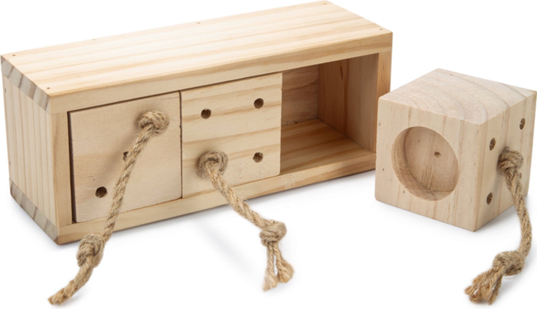 This intelligence toy provides lots of fun and brings a welcome change to the daily routine of small pets and rabbits. Hide your pet's favourite snack in the wooden blocks and let them find it themselves. This not only stimulates their mind but also engages their teeth.