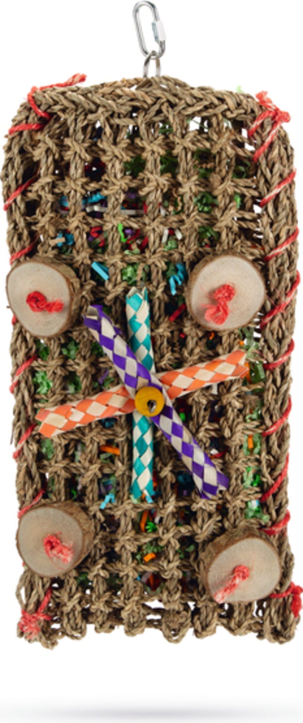 What fun this is! This toy brings a smile to your face at first sight and, with its cheerful design, is an eye-catching addition to any birdcage. Made from woven grass and embellished with many playful paper strips, it offers plenty of playtime fun and ensures there's never a dull moment.