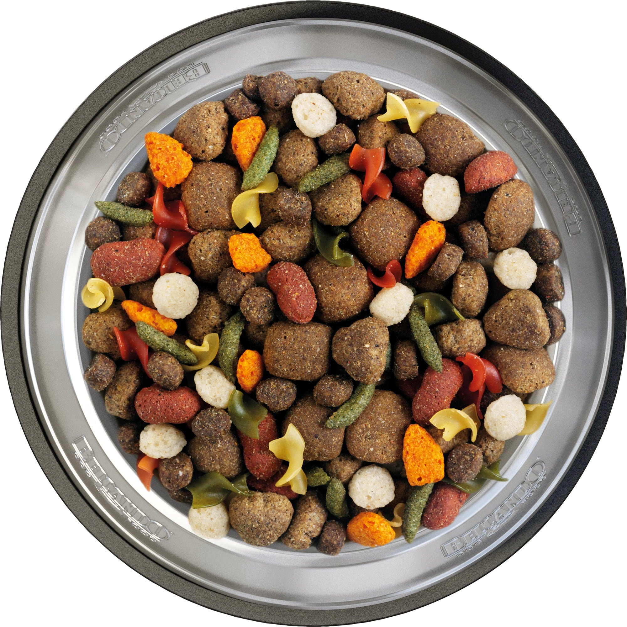 This delicacy is a varied dry pet food that provides grown, normally active dogs with valuable nutrients from croquettes, vegetable chips, and noodles. The delicious recipe combines tasty ingredients with rice and consists of 70% animal protein (poultry, beef, fish).
