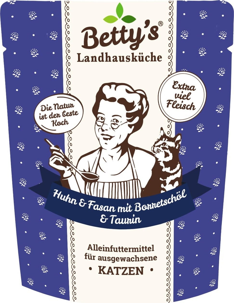 Betty's Landhausküche Wet Food Pouch Adult: Chicken & Pheasant with Borage Oil, 250 g