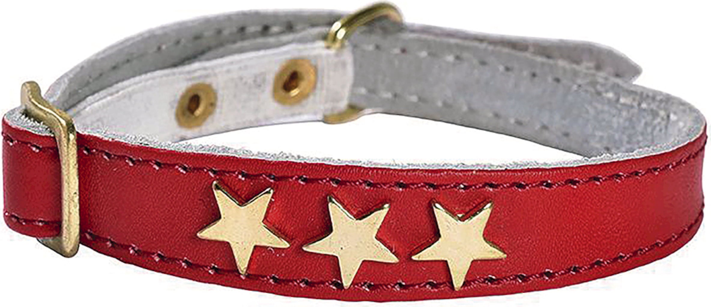 A little glamour for every cat! This leather collar is adorned with gold-plated stars, adding a touch of fairy-tale charm. The collar features a safety clasp and fits comfortably against the coat.