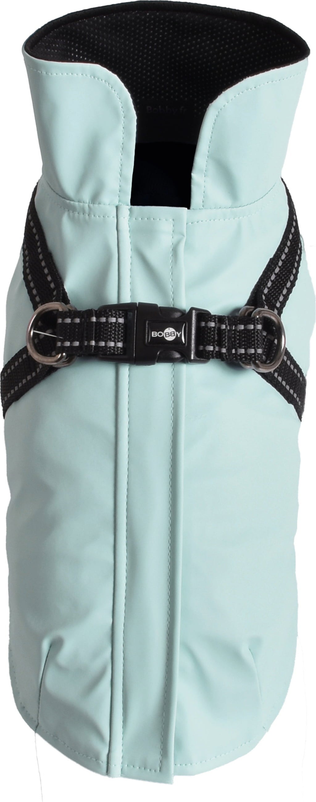 There's no such thing as bad weather, only unsuitable clothing - and this stylish raincoat in cool ice blue is the perfect proof. With an outer layer of water-repellent neoprene and a soft micro-mesh lining inside, it's the perfect companion for rainy days. A foldable stand-up collar offers additional wind protection, and reflective details ensure your pet remains easily visible even in poor lighting conditions. Equipped like this, there's nothing to stop an extended walk in the rain.