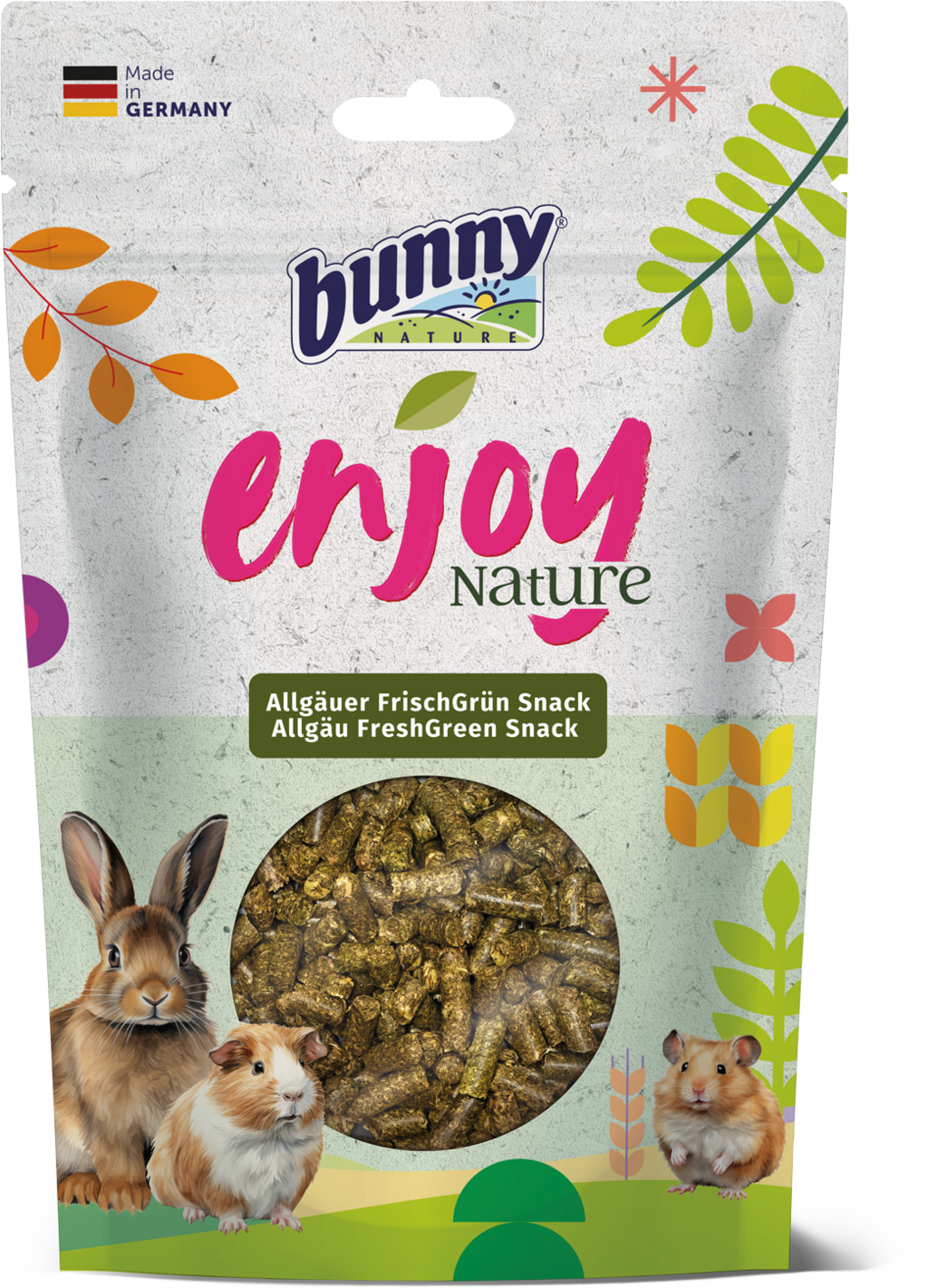 This succulent, green snack is as lush as the meadows of Allgäu and perfect for dwarf rabbits and small pets. It's especially high in crude fibre, making it a valuable addition to their daily diet, while being an ideal alternative for pets and people allergic to hay.