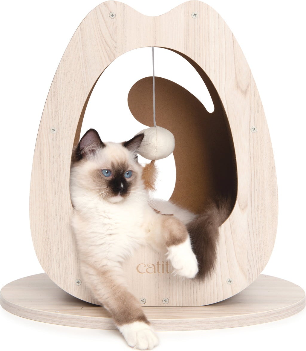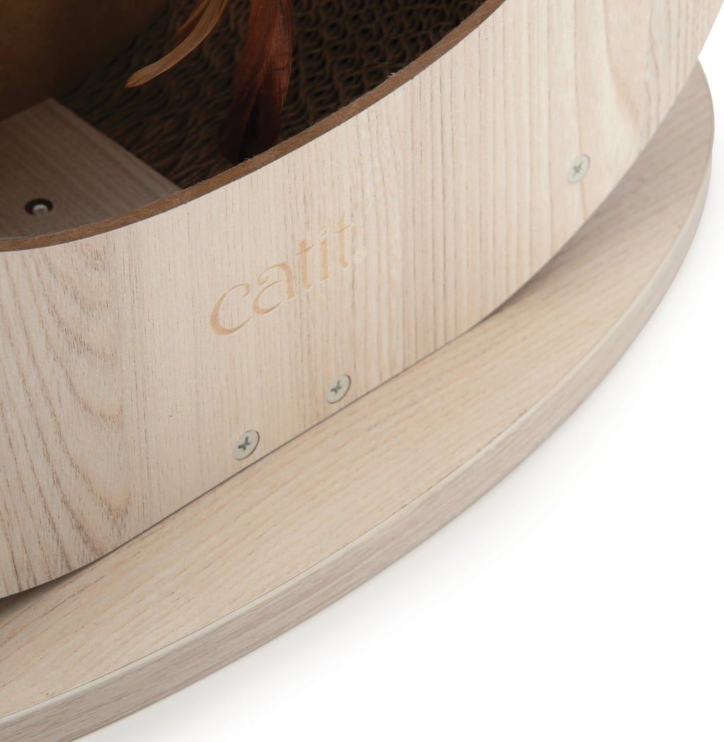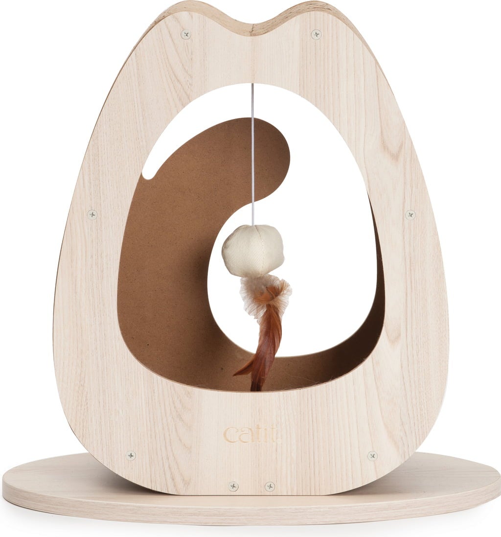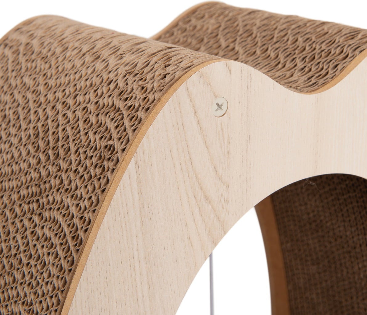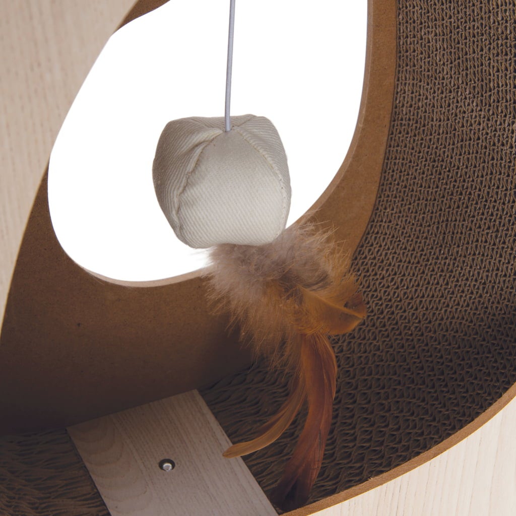 The wide Pixi Scratch Sculpture with an oak look offers your cat an excellent opportunity for scratching and playing. The robust wooden construction is equipped with replaceable cardboard elements and a ball toy, allowing your cat to fully enjoy themselves.