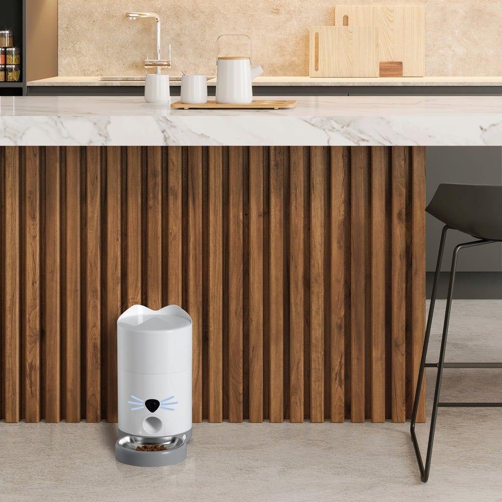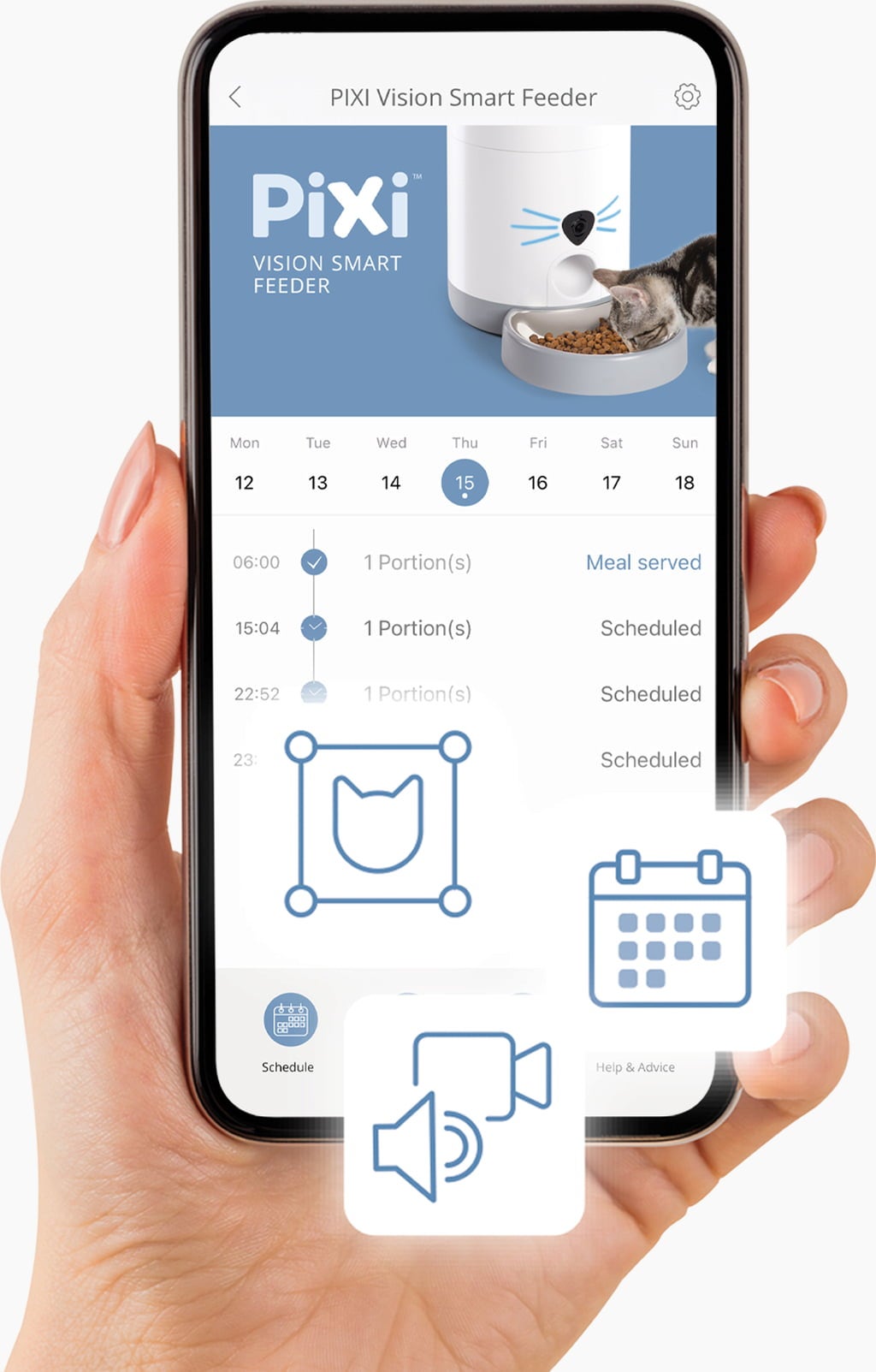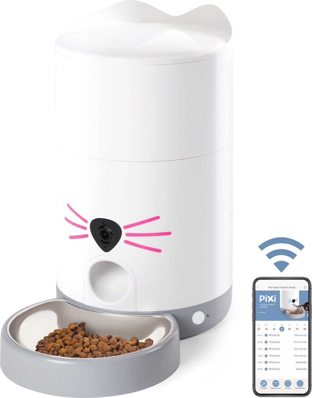 - With the free Catit Pixi app, you can create a feeding schedule tailored to your cat's needs, dispensing food at her usual mealtimes.