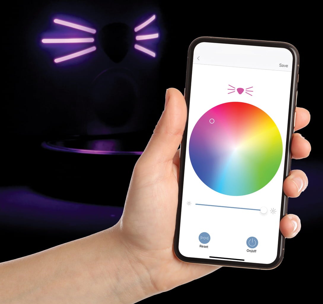 - The LED nightlight whiskers help your cat find the dispenser in the dark. The LED colour and brightness can be customised.