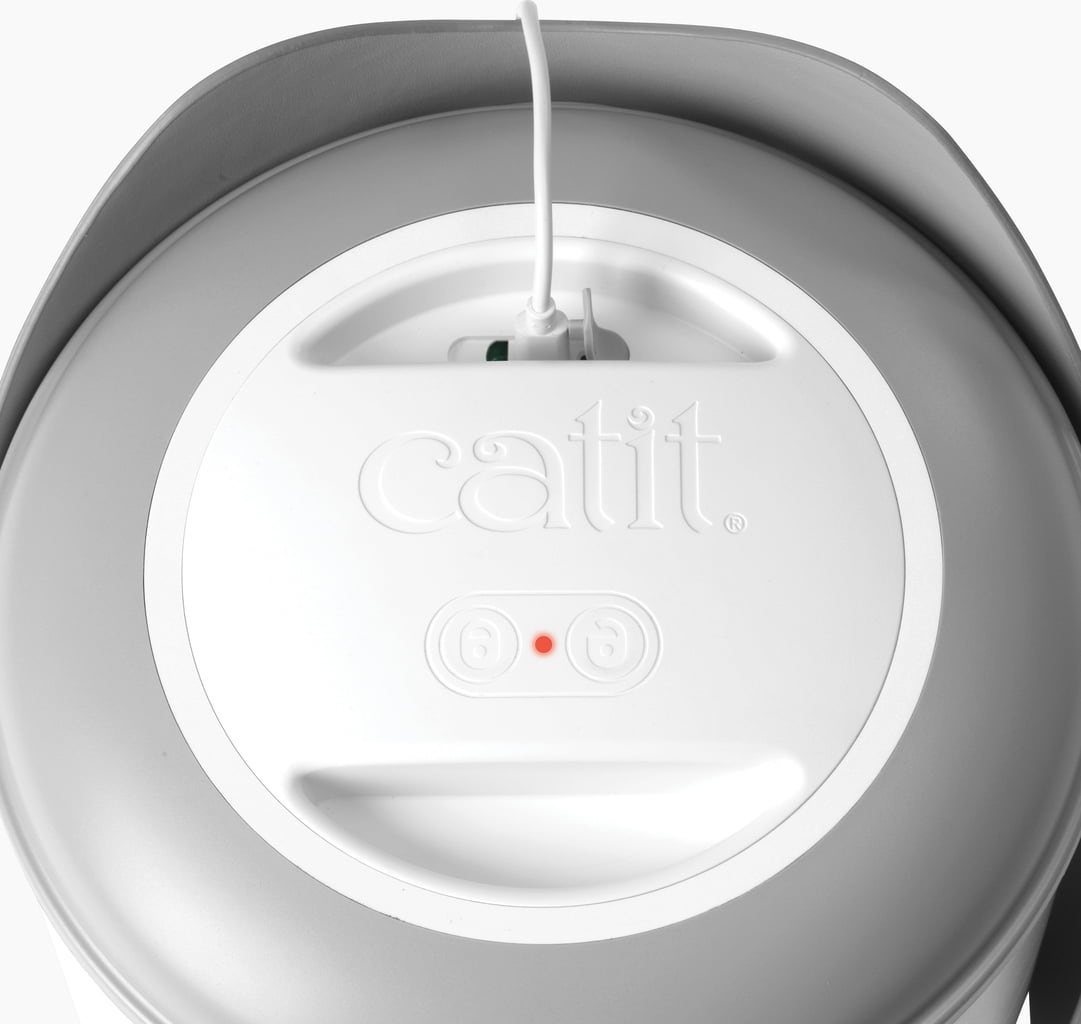 - The pet food container has a built-in battery, which needs charging every 2-3 weeks, depending on usage. The supplied USB-C cable is compatible with any USB-A adapter of 5 V, min. 1 A (adapter not included). A red LED light indicates when charging is necessary.