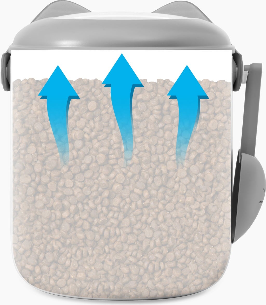 The large 9.6-litre container can hold up to 5.5 kg of dry food. It automatically manages the vacuum, maintaining it consistently to ensure optimal storage conditions are always met. The Vacuum Pet Food Container indicates status with audible signals and performs vacuuming audibly.