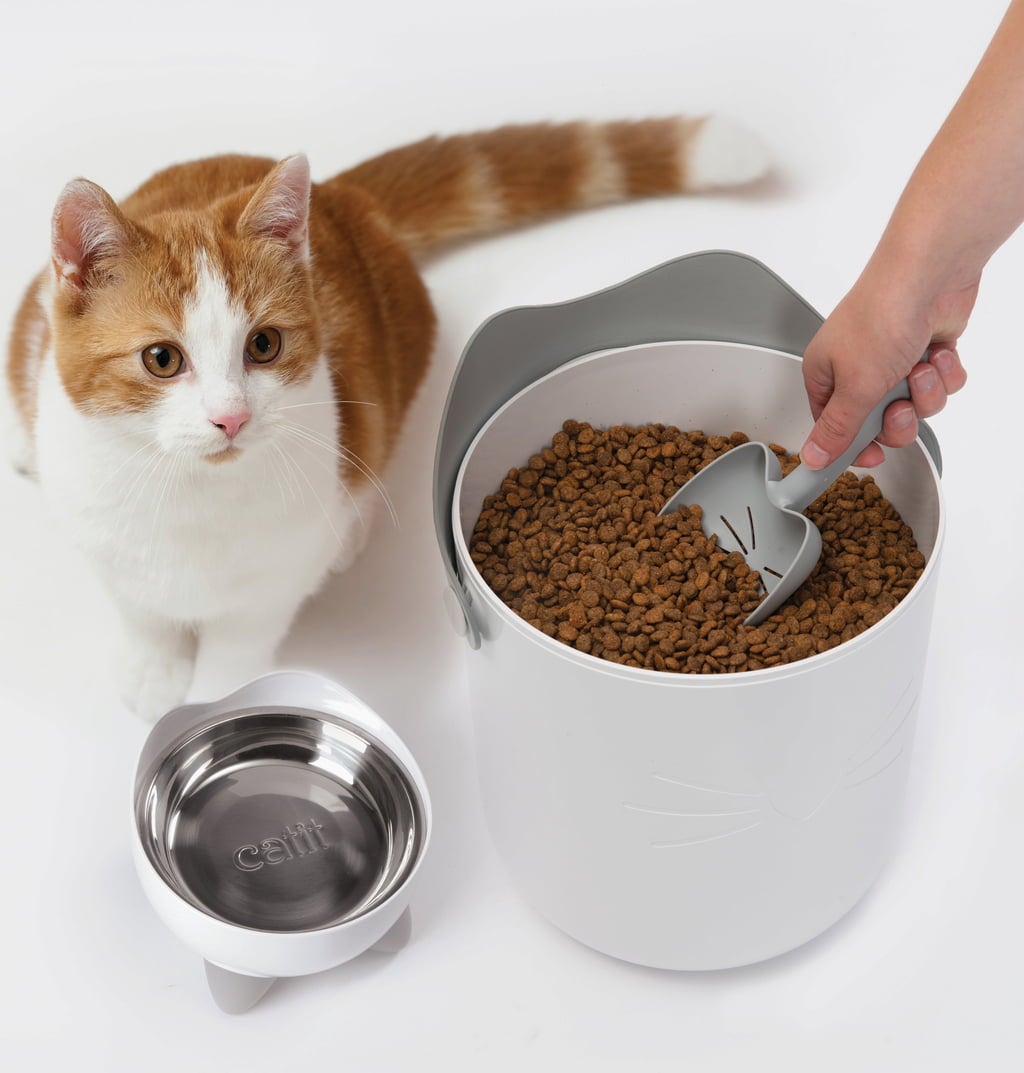 A practical food scoop is also included, making it easy to transfer food from the vacuum container to the pet bowl. The scoop can be conveniently hung on the side of the pet food container.