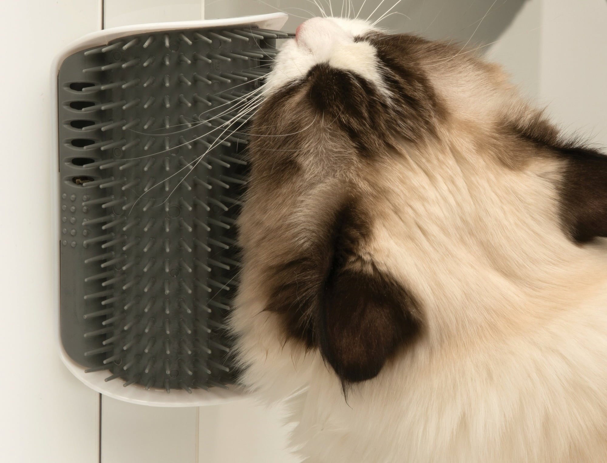 This tool was awarded the friendliest product of the year by International Cat Care in 2017. You can attach the massage corner using the included adhesive tape on furniture curves, wall corners, etc. It features a compartment for catnip, is BPA-free, and offers another practical benefit: loose hair is collected rather than scattered everywhere.