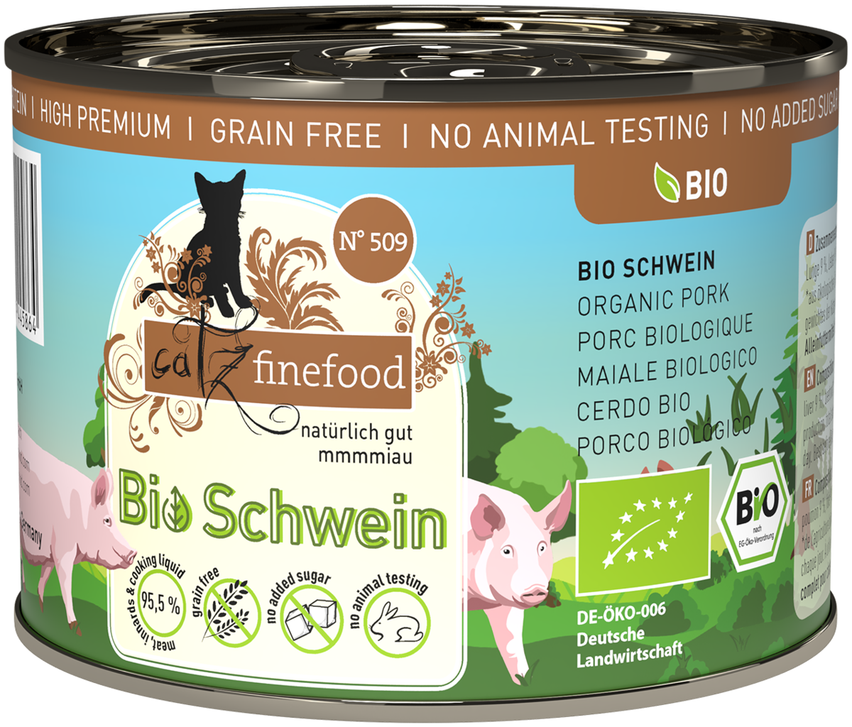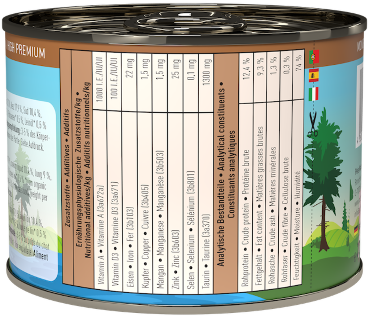 This high-quality monoprotein wet pet food in organic quality offers your cat natural and species-appropriate enjoyment. Selected organic ingredients and a special recipe based on the prey concept provide your cat with all it needs, contributing significantly to a vital feline life.