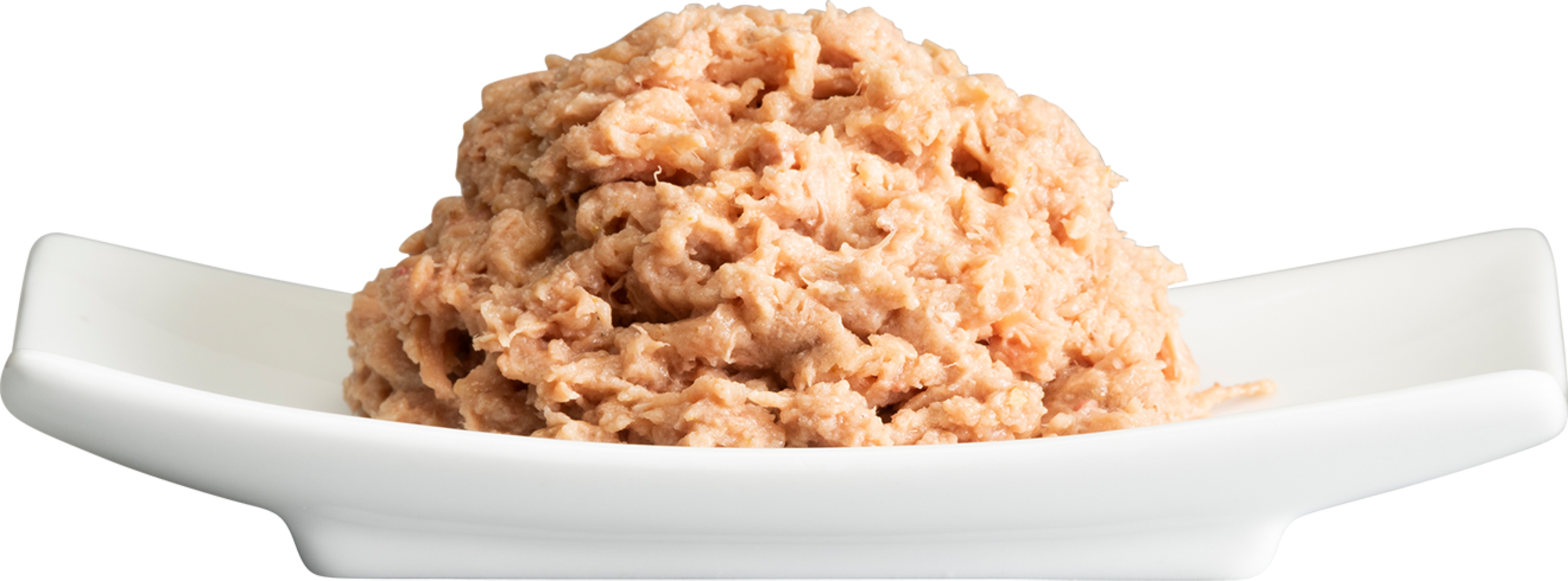40 % Chicken fillet, 38,6 % Chicken and tuna broth, 10 % Tuna, 5 % Chicken liver, 5 % Chicken fat, 1 % Minerals, 0,2 % Chia seeds, 0,2 % Sunflower oil