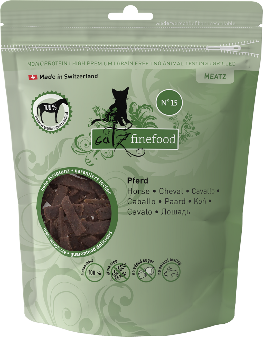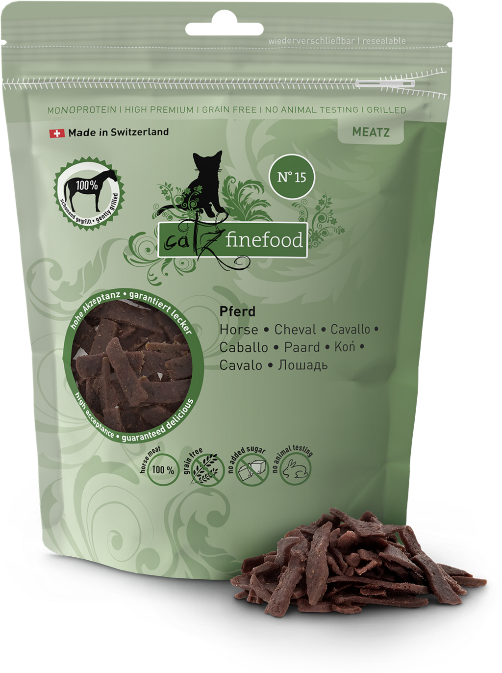 Cat, Meat, Meatz? Whatever you call it, it's essential that it tastes as delicious as these grilled and then gently air-dried meat strips. They are an irresistible snack for your cat, pampering them with a particularly high meat content along with one other valuable ingredient per variety. Crispy on the outside, tender on the inside, and with an intense meat aroma - this tempting reward makes even the trip to the carrier an easy task.