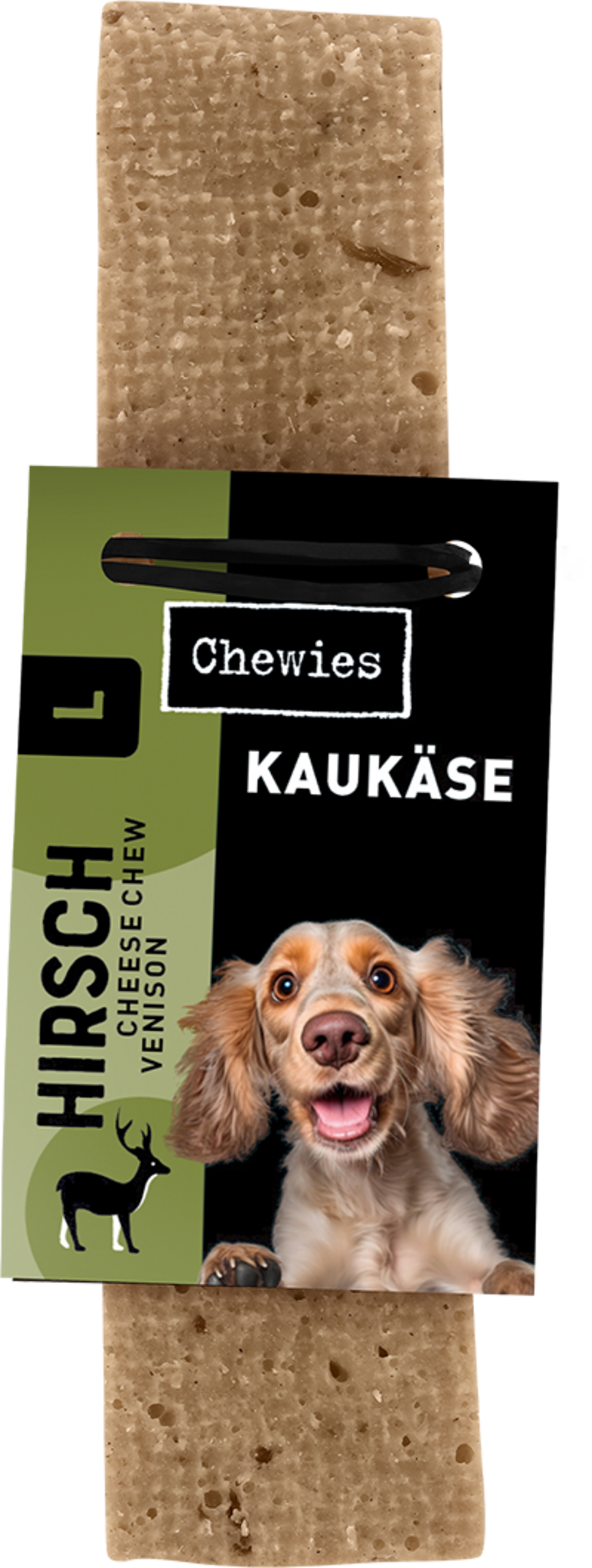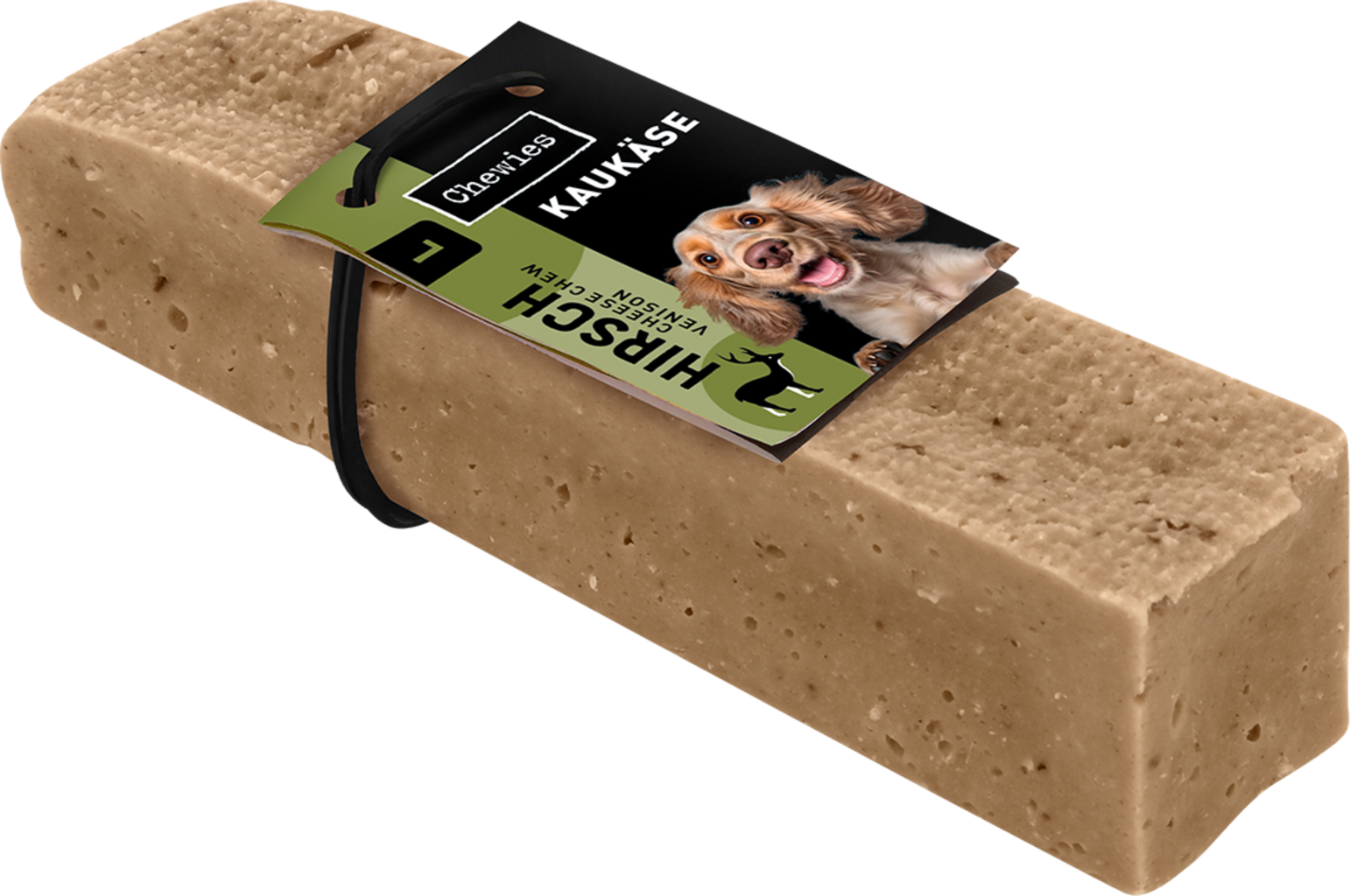 Your dog is a real fan of milk - then it's time for Chew Cheese by Chewies. This small snack is enhanced with venison and provides great fun and engagement. Naturally, Chewies completely avoids the use of flavourings, colourings, and preservatives as well as added sugars in production. For 100% natural chewing enjoyment, with dental cleaning effects.