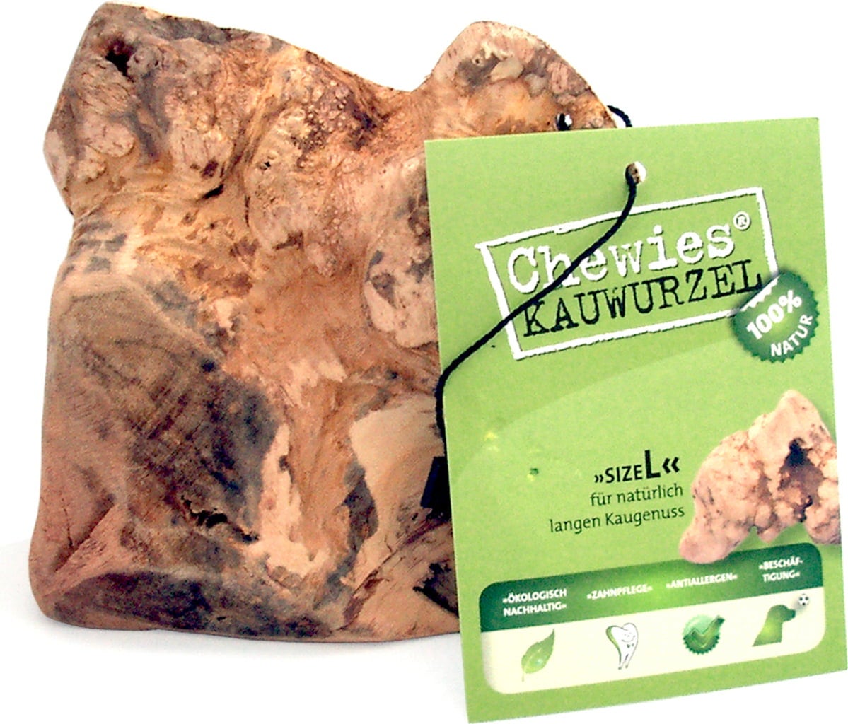 The Chew Root by Chewies is the perfect snack for dogs who love to chew. It is a 100% natural hardwood root from a Mediterranean heath bush found in the forests of Italy. The root offers long-lasting chewing enjoyment for dogs of all sizes and ages, and is even suitable for allergy sufferers!
