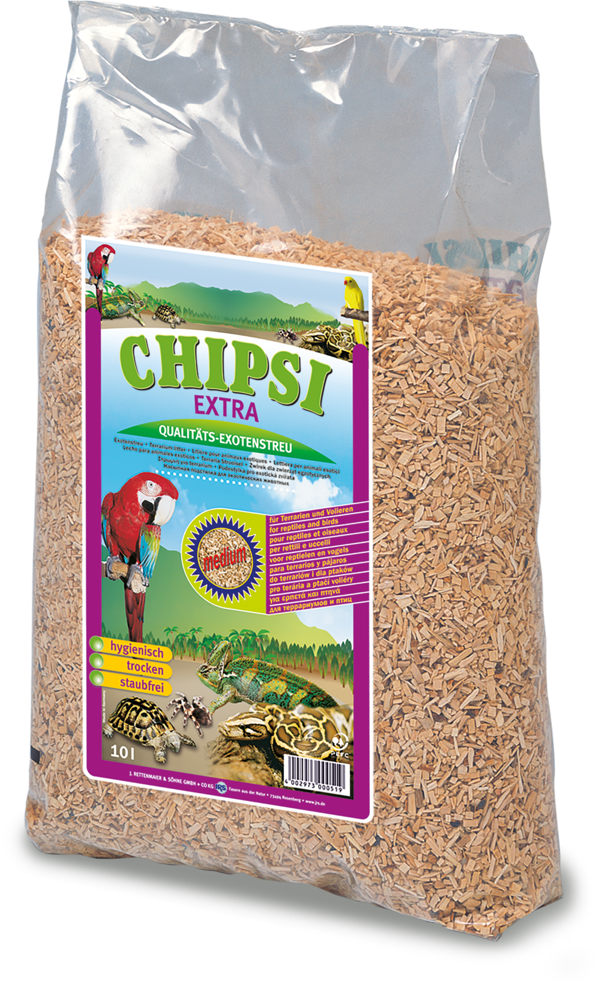 CHIPSI EXTRA MEDIUM is a premium bedding solution designed for dry terrariums and aviaries. Made from high-quality beech wood, this innovative solid wood product is perfect for exotic animals like iguanas, parakeets, certain parrot species, and small, sensitive creatures such as spiders and tortoises.