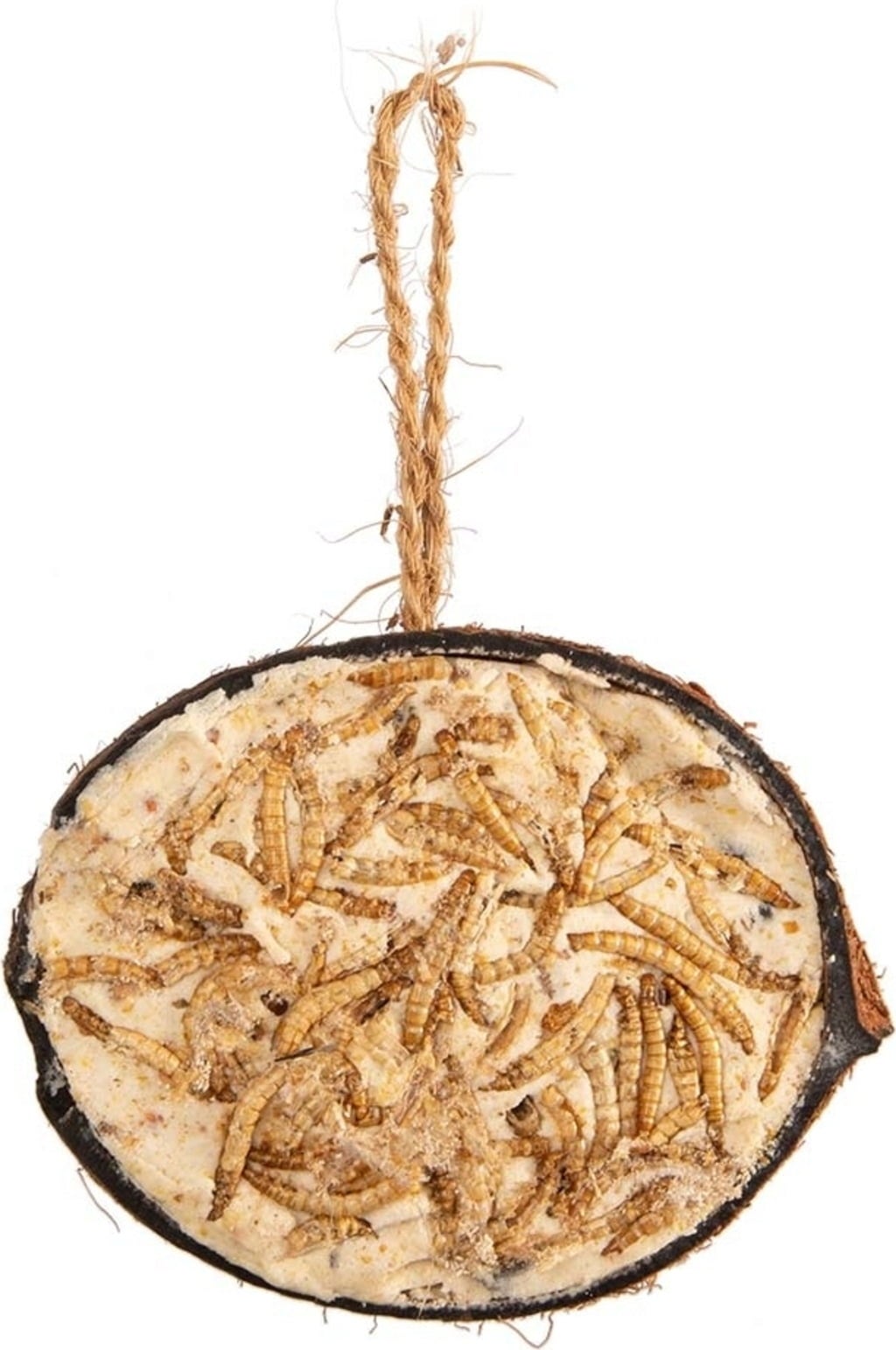 Treat your birds with this exquisite bird food in the form of half a coconut. Filled with high-quality fat and protein-rich mealworms, you offer the birds in your garden a delightful treat. With a selection of sunflower seeds and peanuts, this food is an ideal energy source.