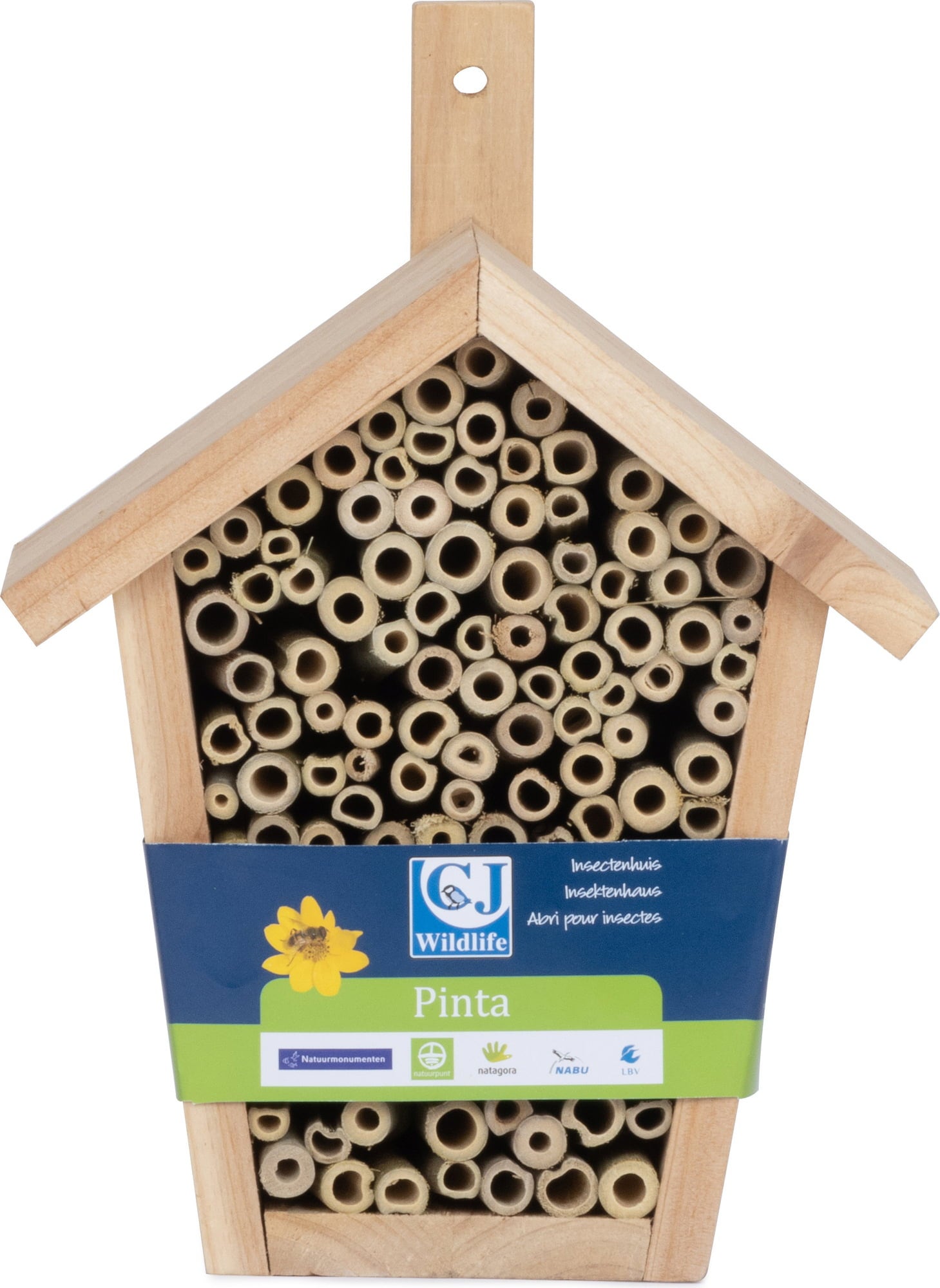 The Insect Hotel Pinta by CJ Wildlife is the perfect habitat for insects, bees and spiders. Made from high-quality wood, it blends seamlessly into any garden and provides a safe shelter for beneficial creatures. The hotel is thoughtfully designed to meet the diverse needs of various species: Different compartments and hollow spaces inside the hotel offer protection and nesting opportunities.