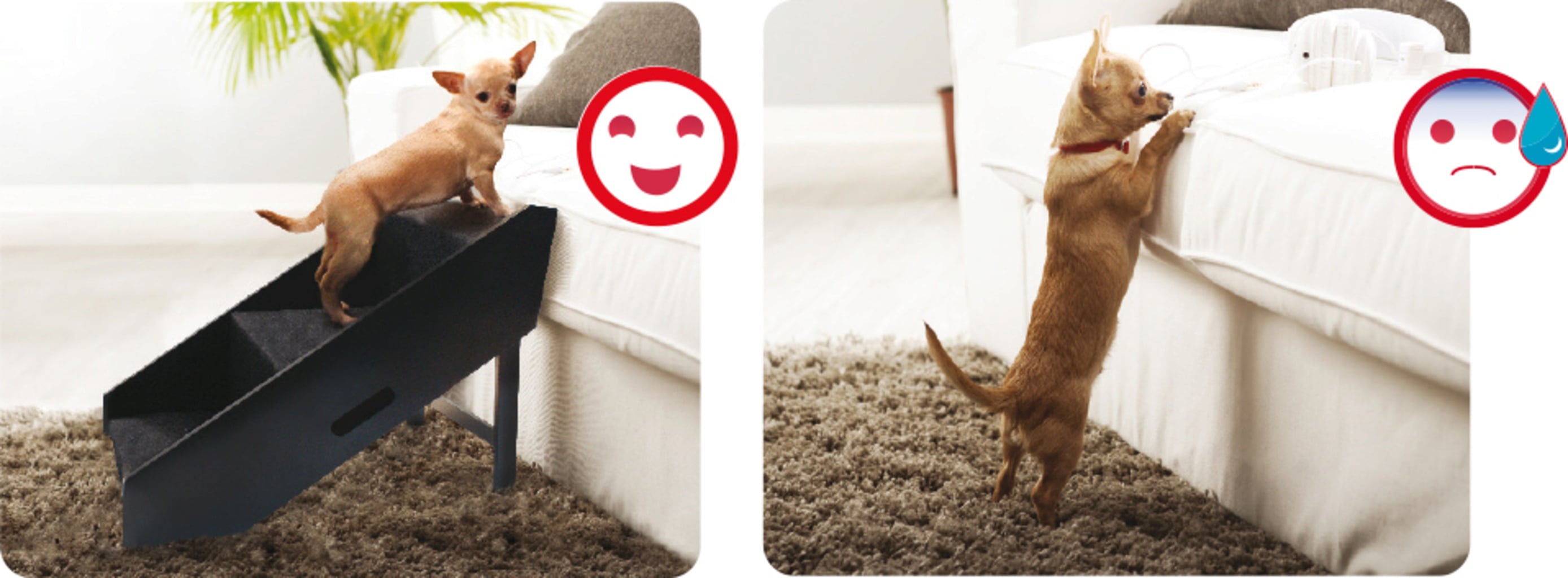 This 2-in-1 dog ramp by Croci is the perfect pet accessory for helping pets overcome height differences. It supports older and sick animals, puppies, and pets with short legs, for instance, when getting into or out of a car.