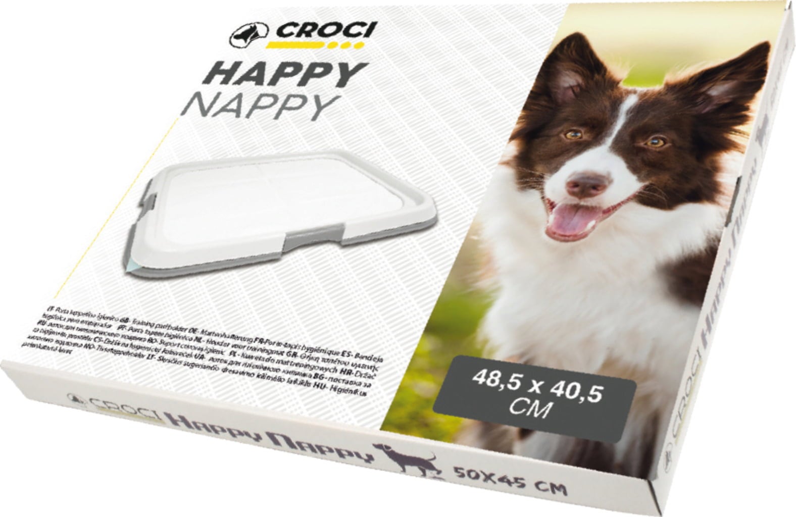 If your dog cannot leave the house for health or similar reasons to do its business, an alternative is necessary. Happy Nappy by Croci is THE solution for an efficient attachment of hygiene mats. The frame features a raised edge to prevent liquids from leaking, and the non-slip rubber pads ensure a firm grip on the floor.