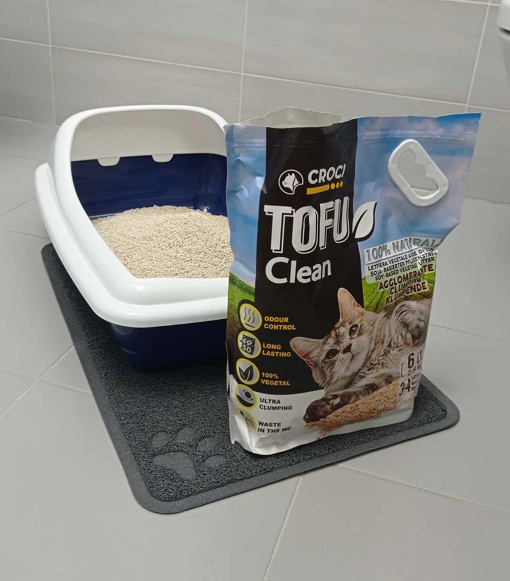 Tofu Clean by Croci is a purely plant-based cat litter made from soy. The cat litter is biodegradable, free from chemical components, and gentle on cats' paws. Maximum absorption capacity and odour control!