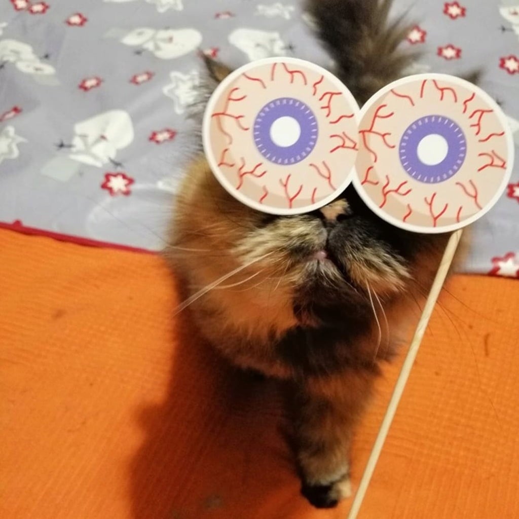 Dress up your pet as an evil witch, a cute ghost or a bloodthirsty vampire in no time! The masks are very easy to put together - just glue them to the stick enclosed, position your pet and click away!
