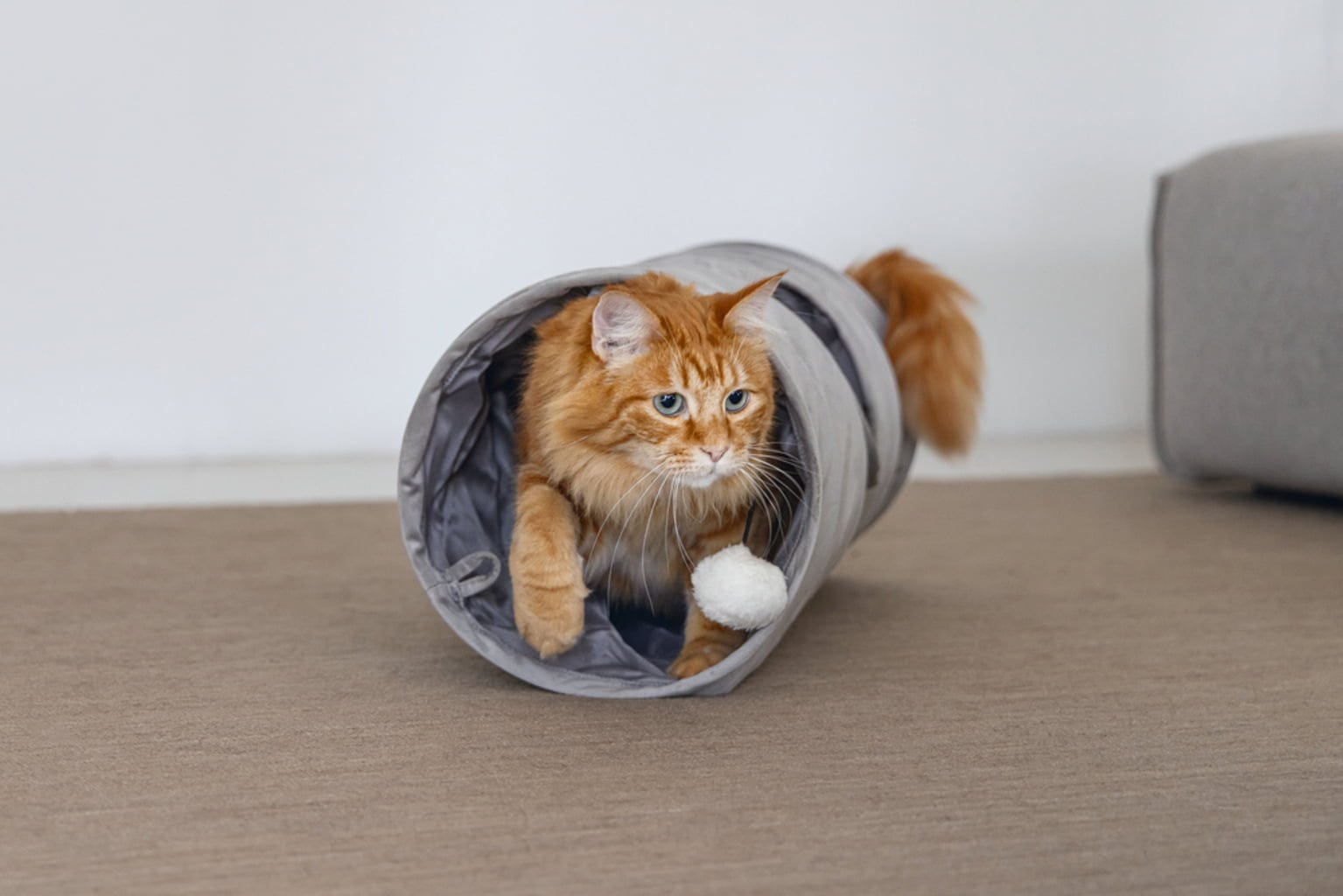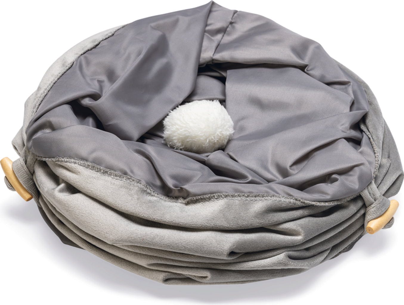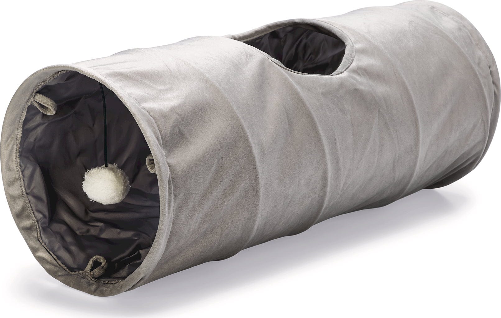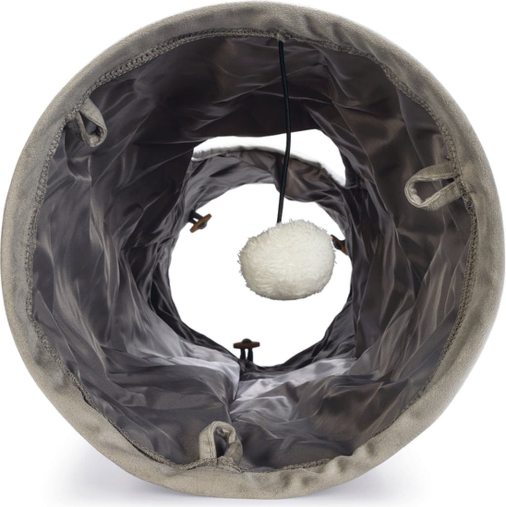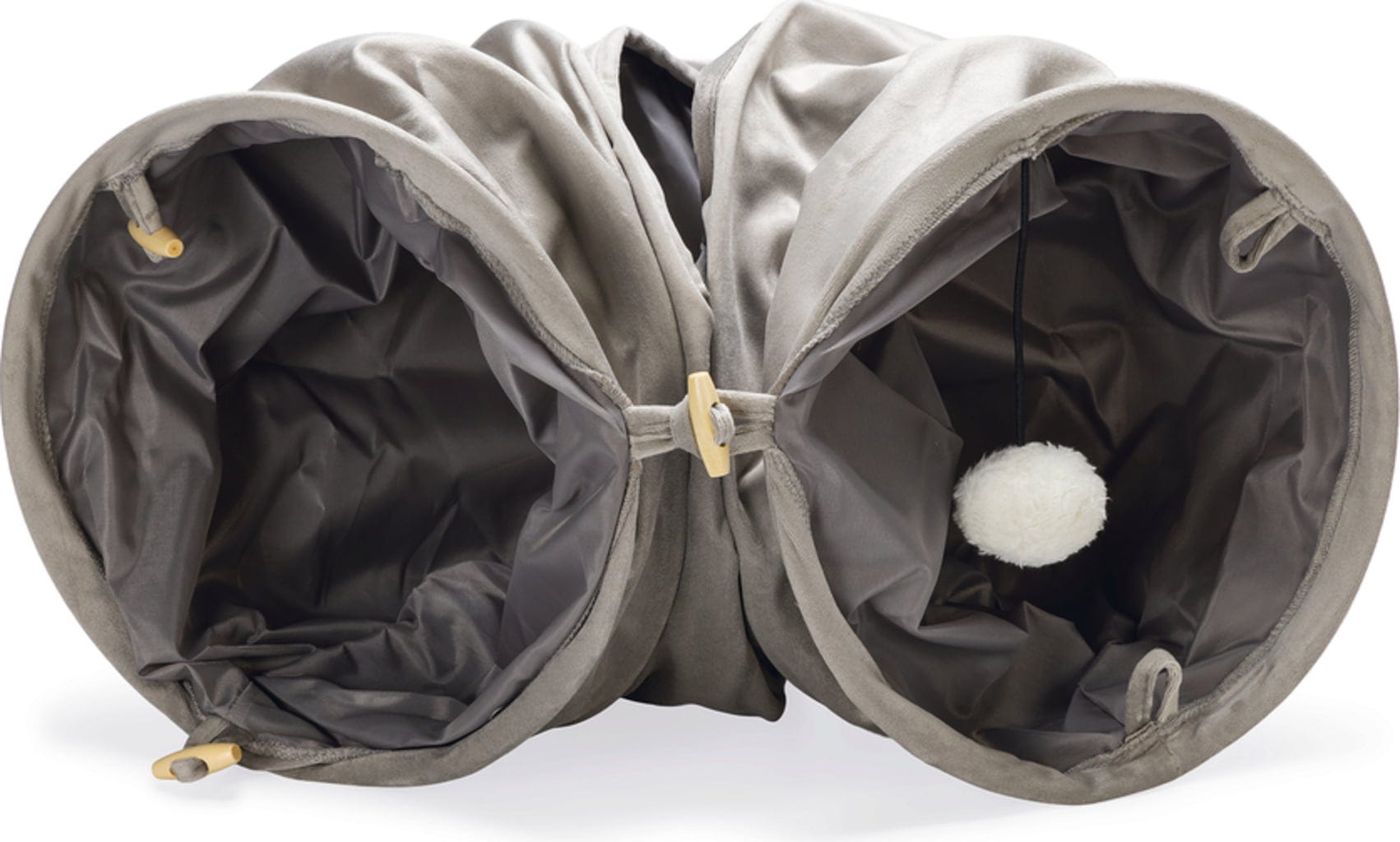 This tunnel provides a delightful change to your cat's daily routine, as it not only offers a cosy retreat for resting but also serves as an exciting playground, thanks to the dangling ball inside. Your cat will be thrilled.