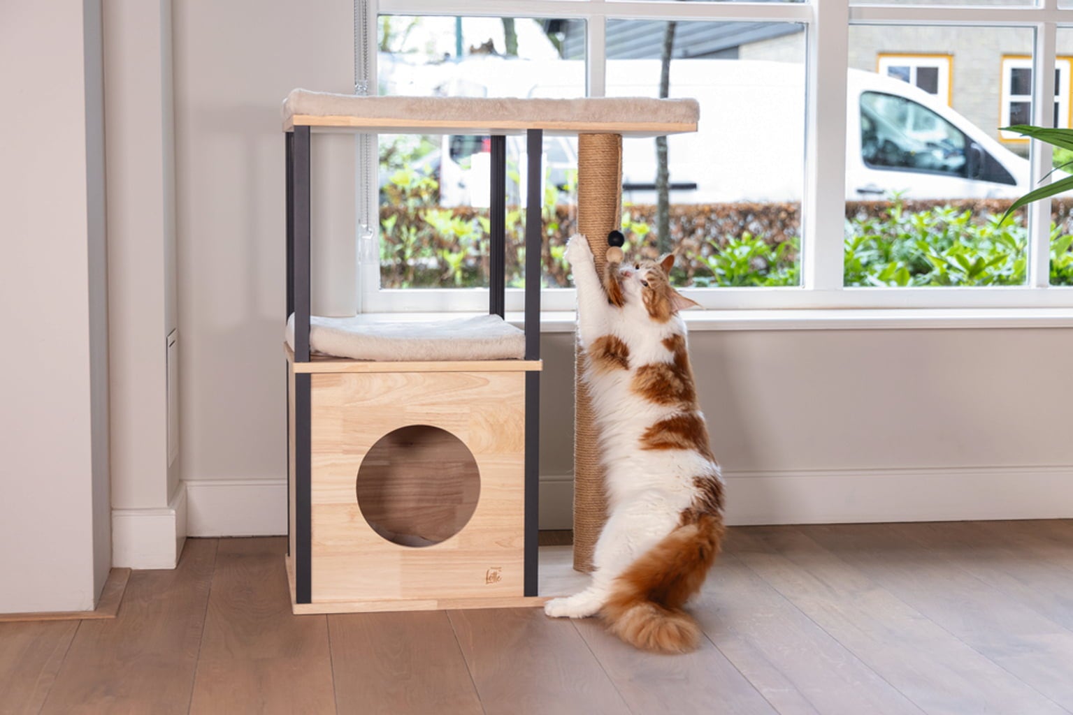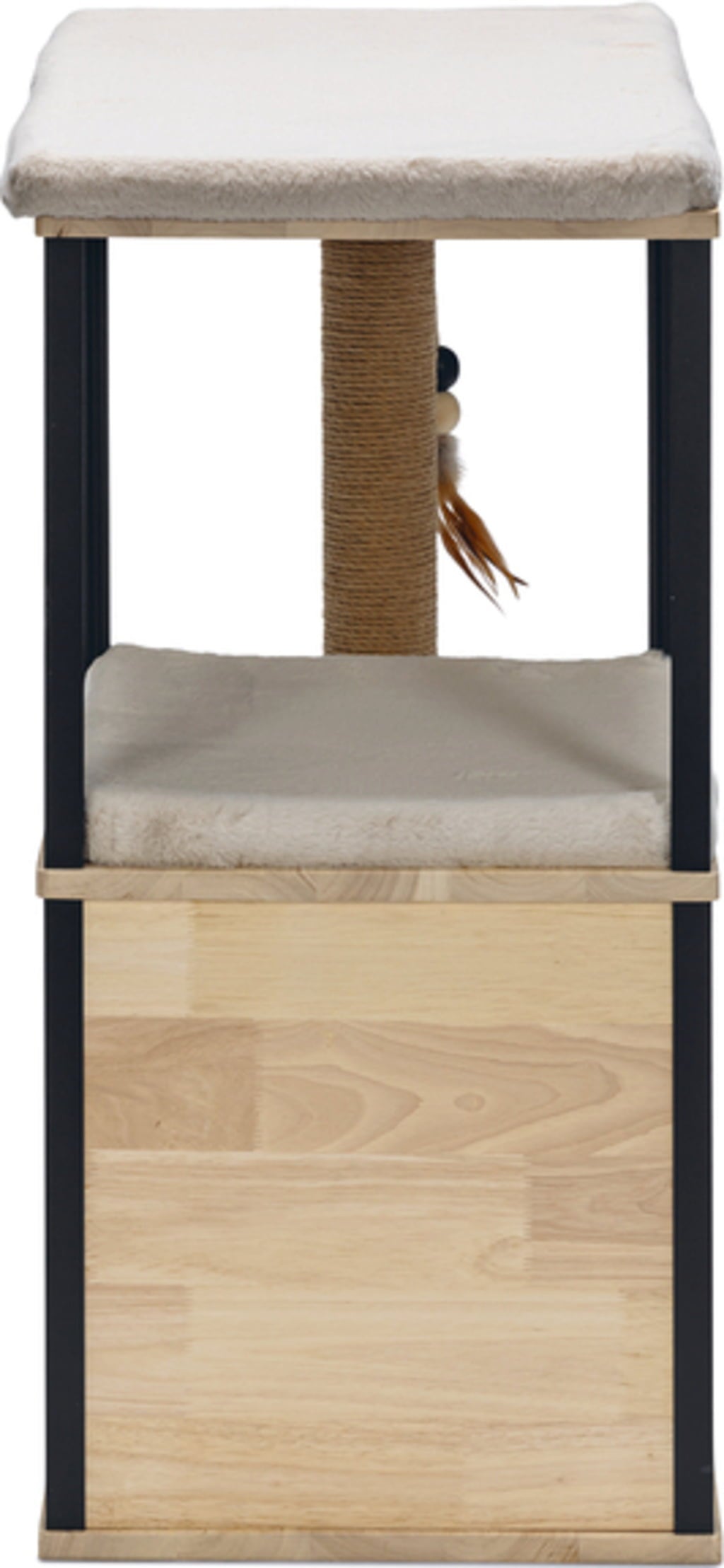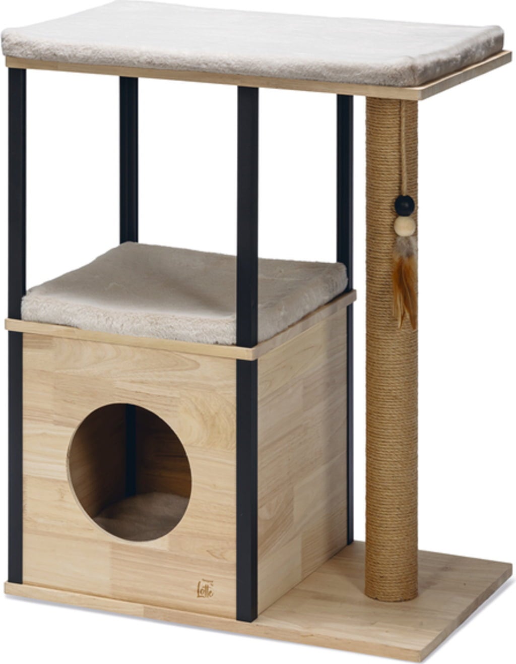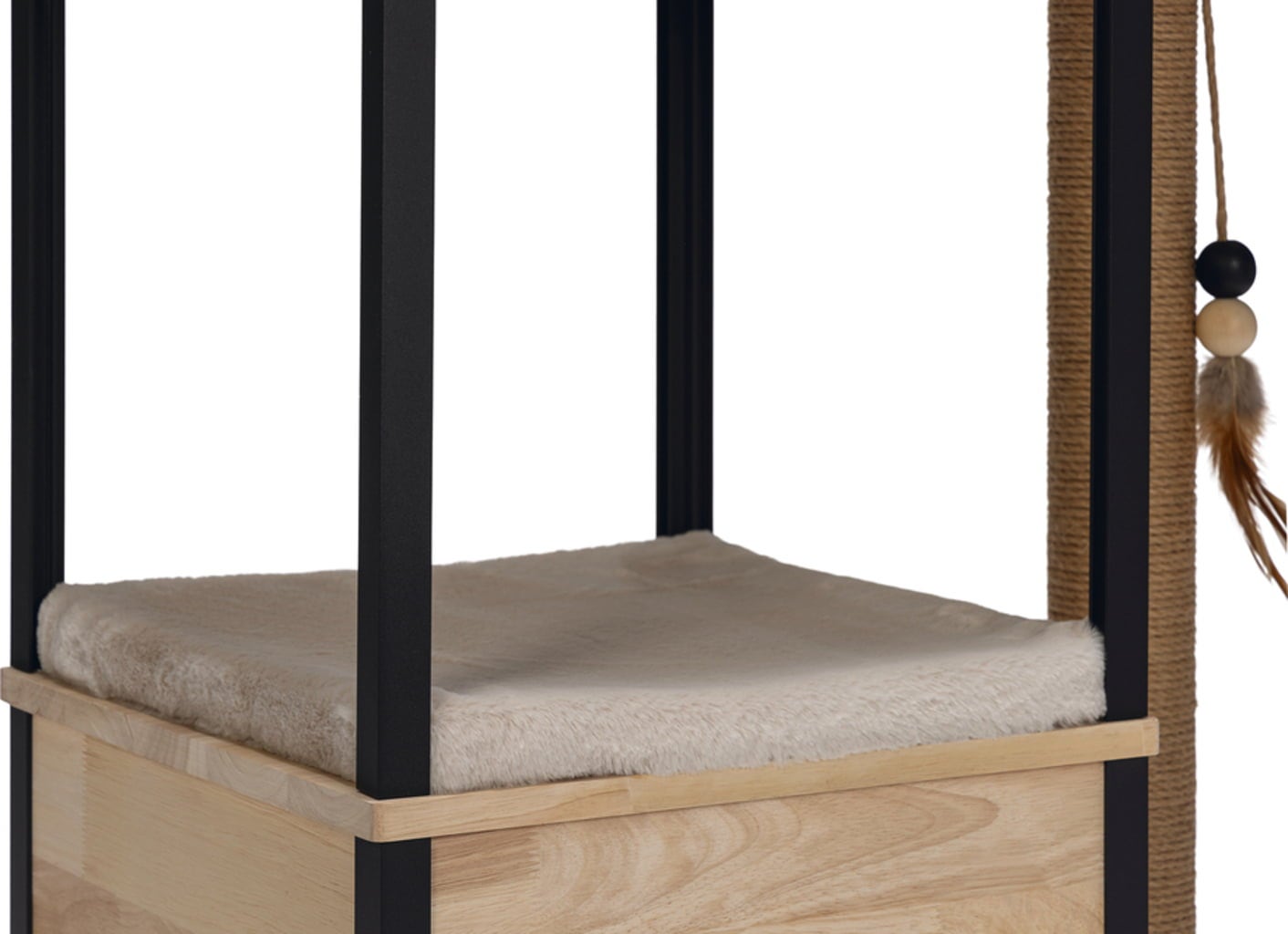 A scratching opportunity, a cosy den, two resting and observation platforms, and a fun featherball for play - what more could a cat desire? This scratch tree offers your cat plenty of opportunities for resting, playing, and sharpening their claws, and it looks fantastic too, making it a true asset for any stylishly furnished home.