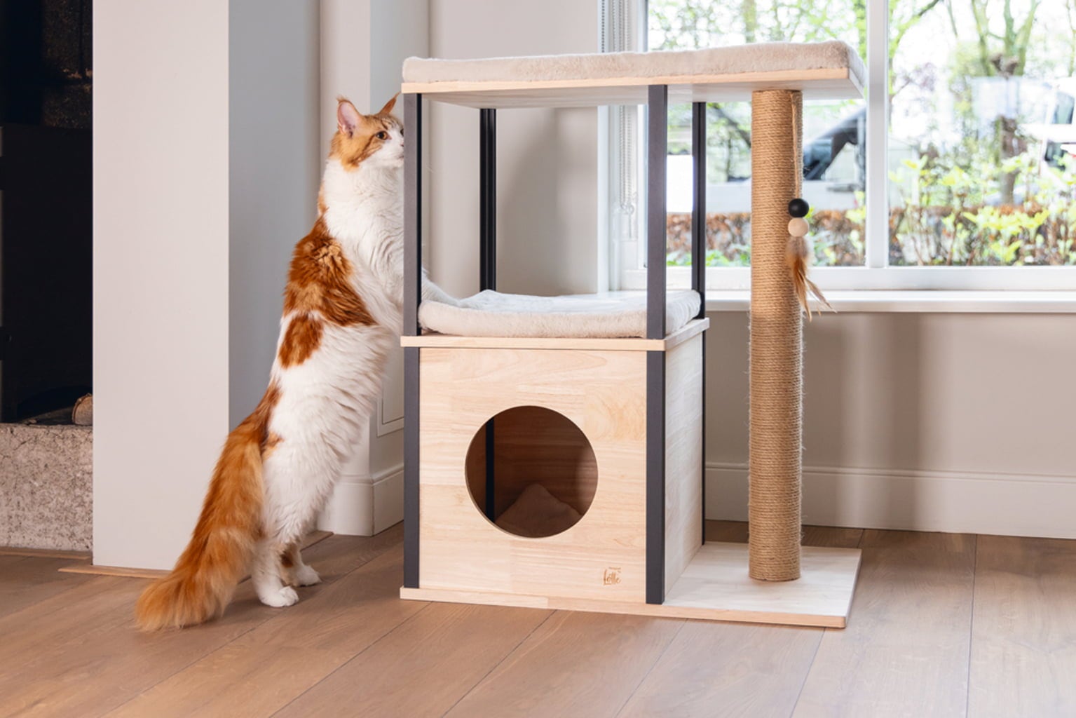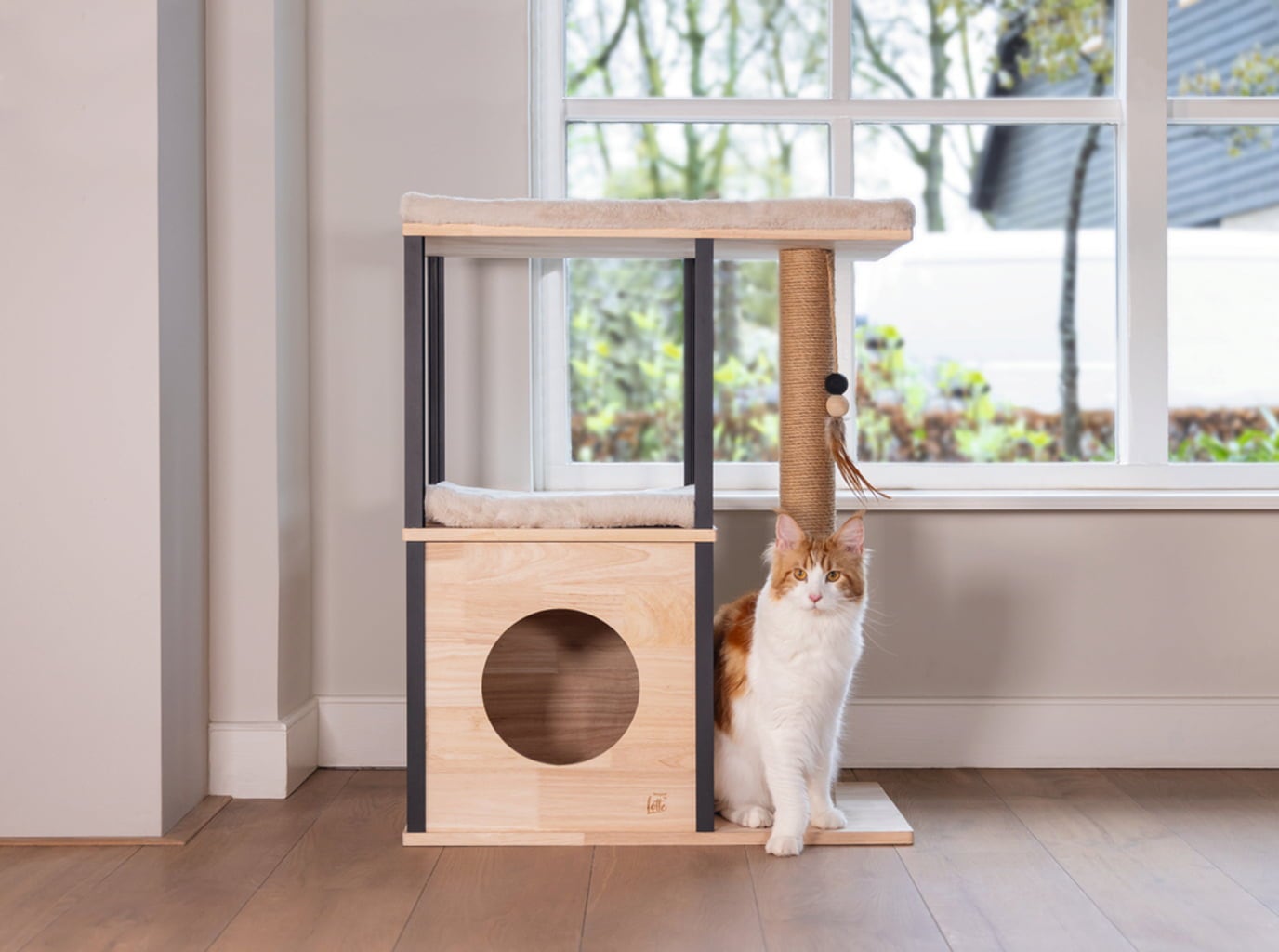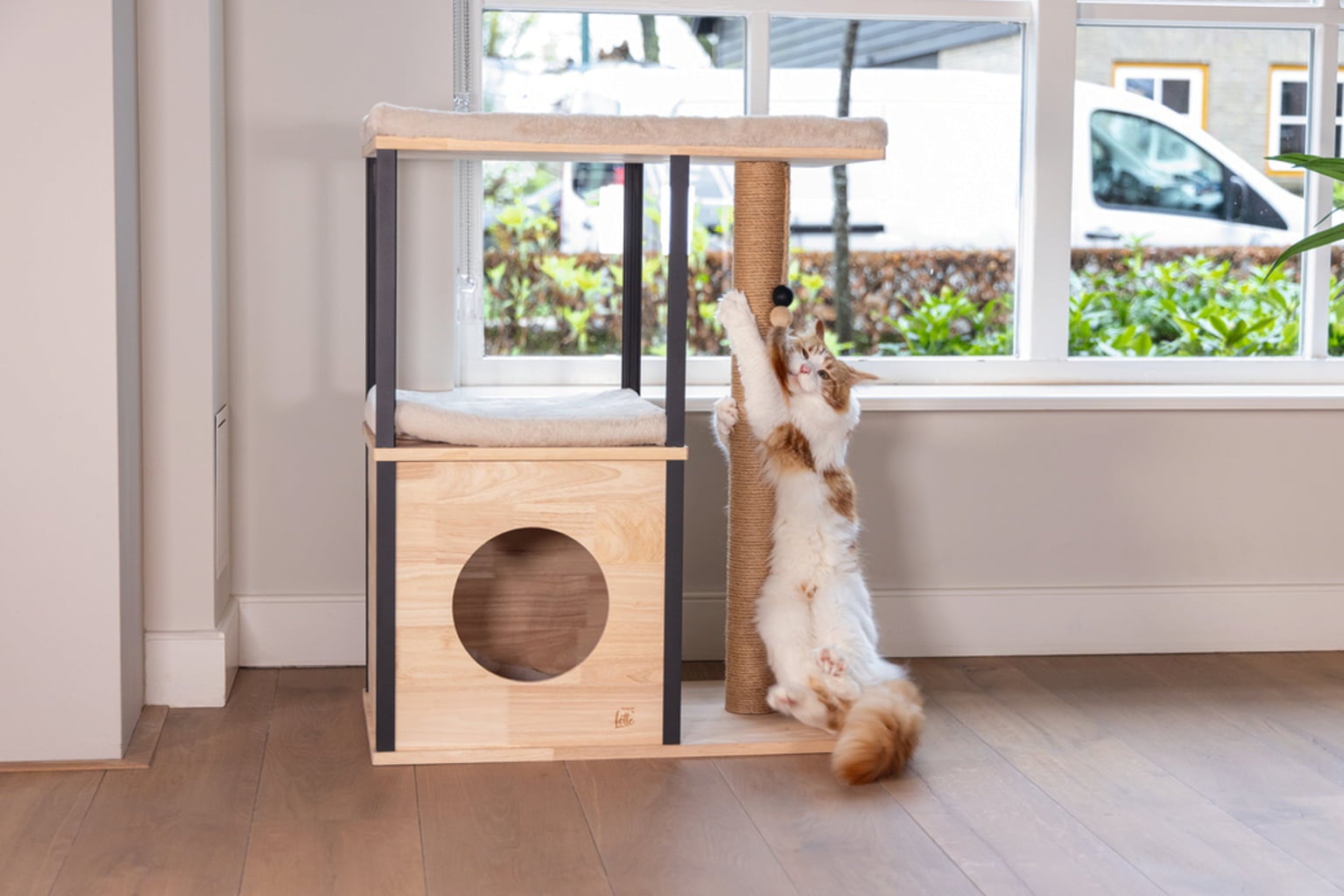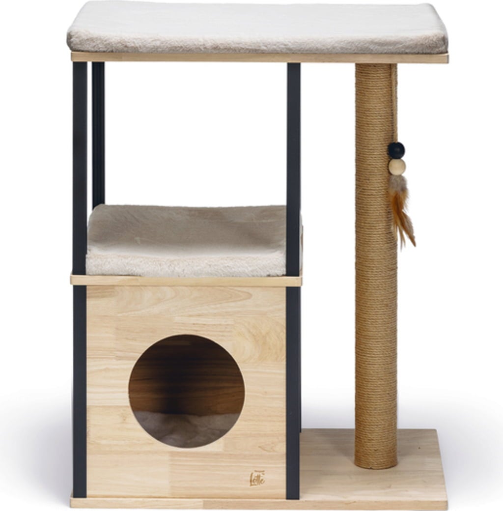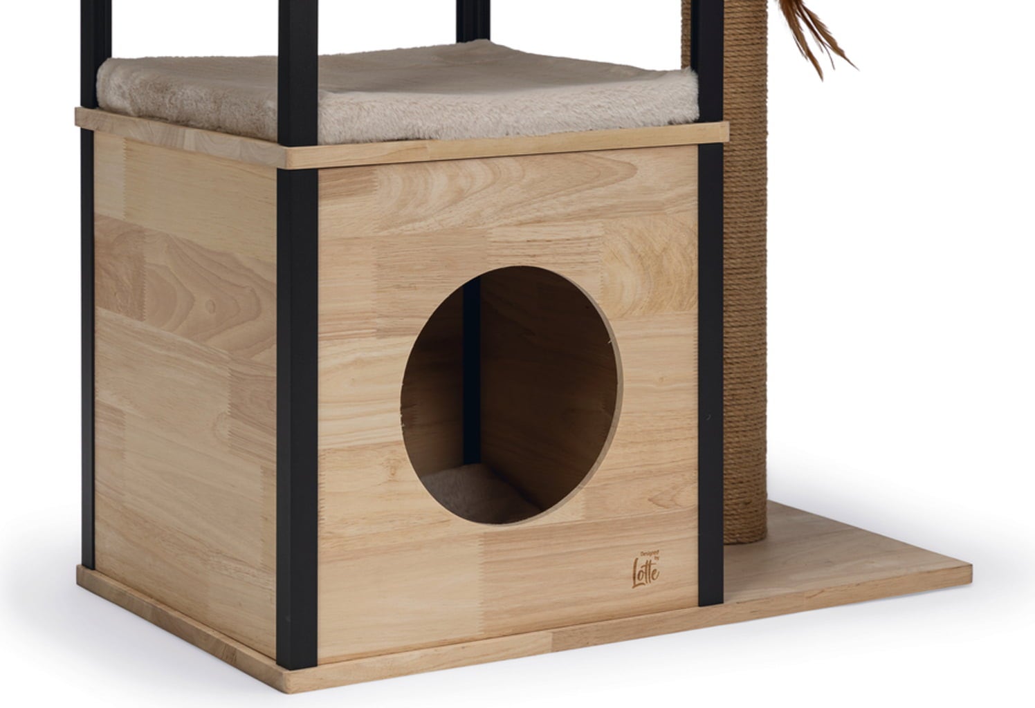 A scratching opportunity, a cosy den, two resting and observation platforms, and a fun featherball for play - what more could a cat desire? This scratch tree offers your cat plenty of opportunities for resting, playing, and sharpening their claws, and it looks fantastic too, making it a true asset for any stylishly furnished home.