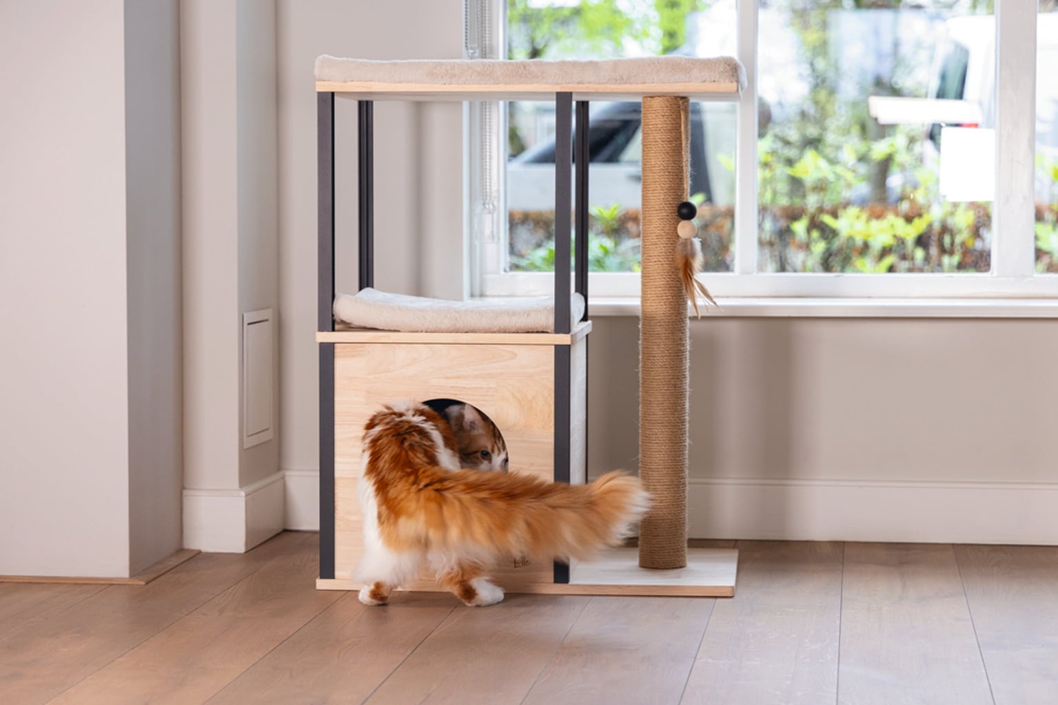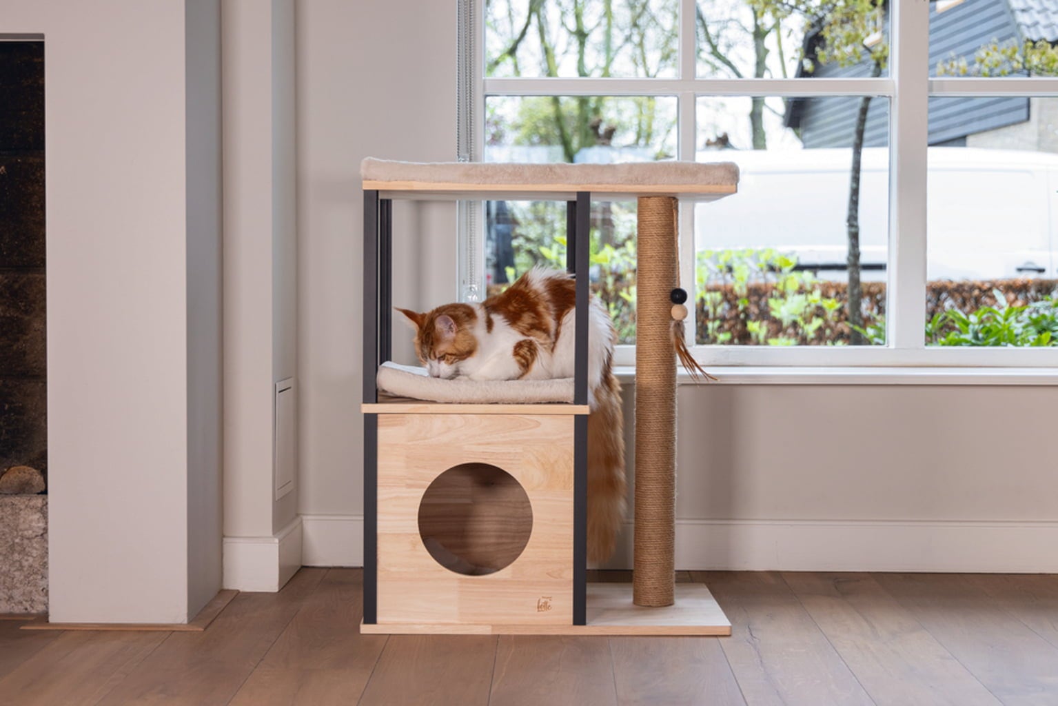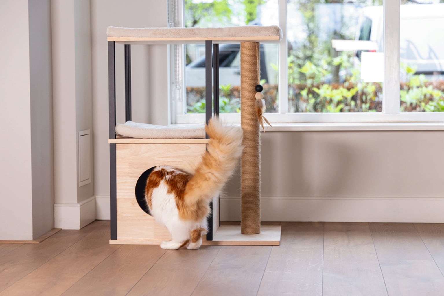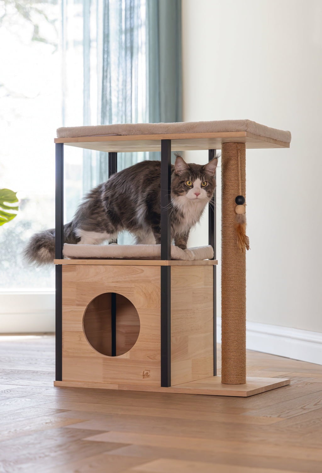 A scratching opportunity, a cosy den, two resting and observation platforms, and a fun featherball for play - what more could a cat desire? This scratch tree offers your cat plenty of opportunities for resting, playing, and sharpening their claws, and it looks fantastic too, making it a true asset for any stylishly furnished home.