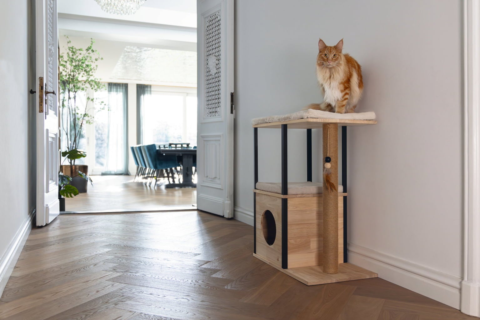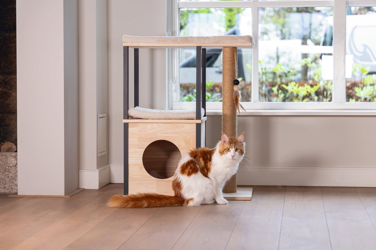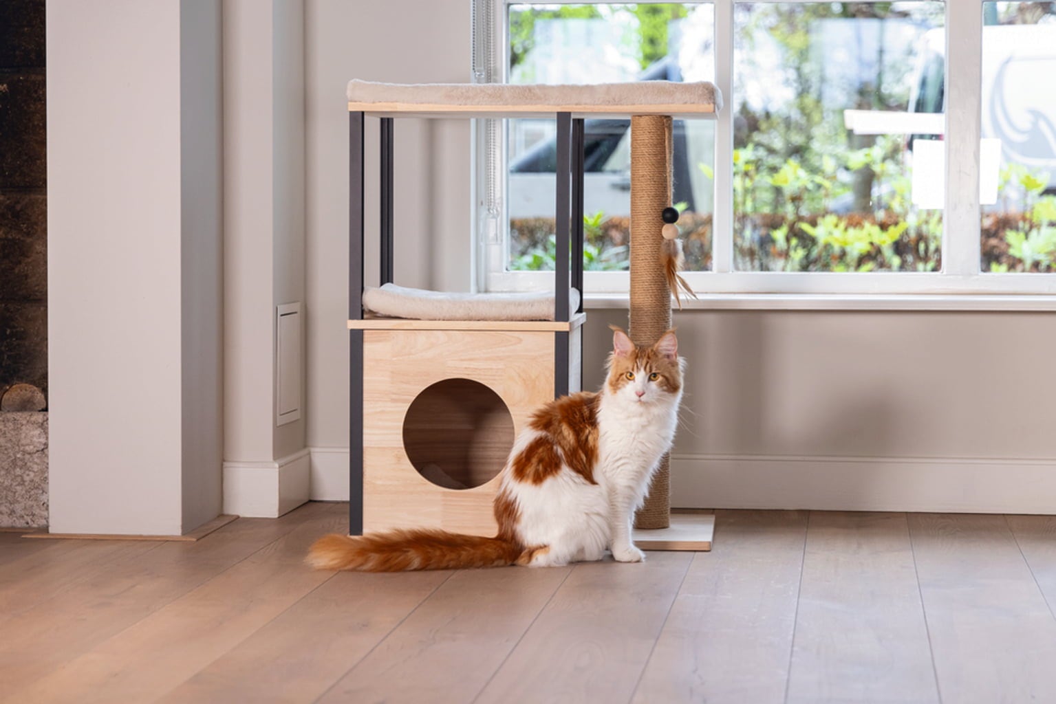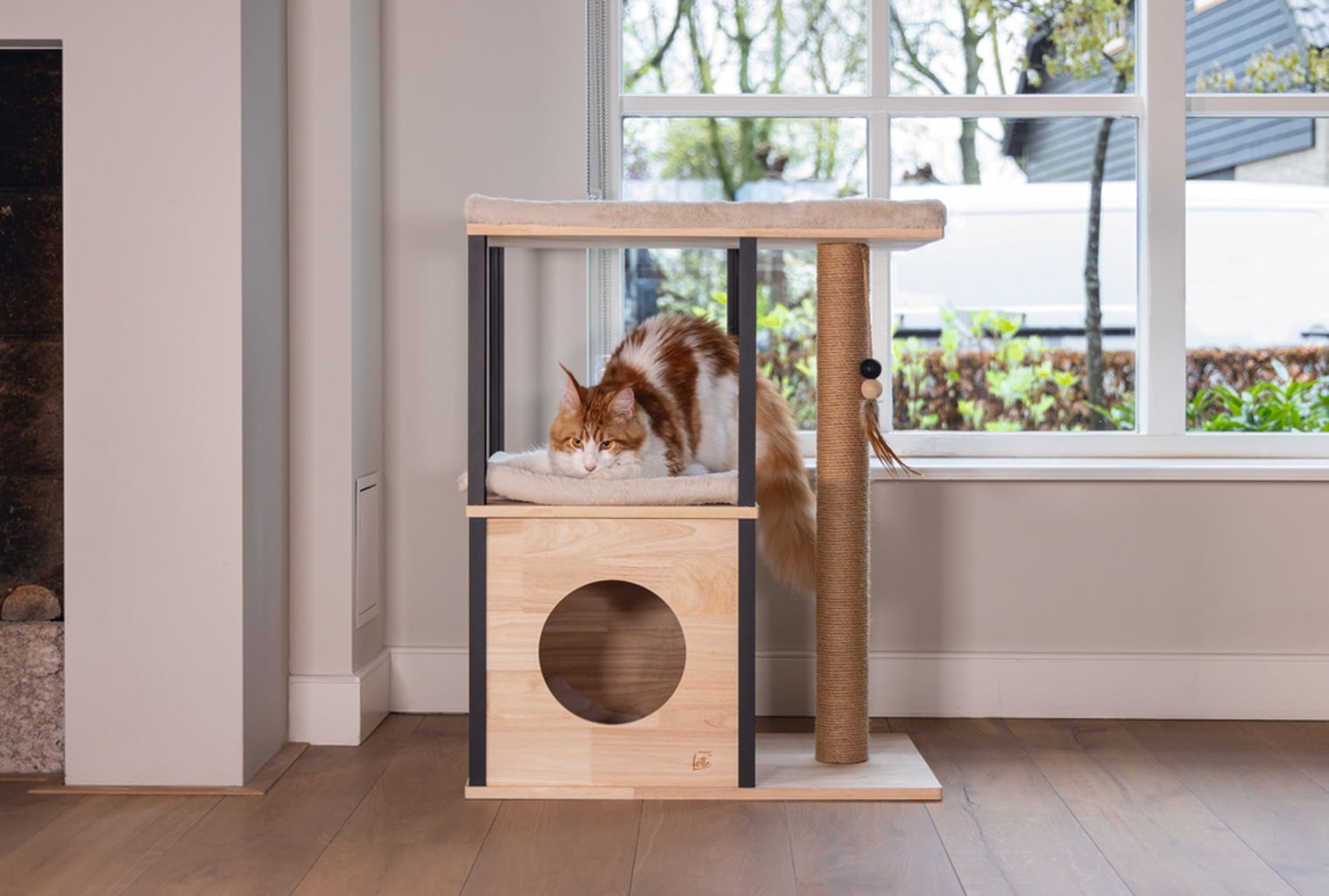 A scratching opportunity, a cosy den, two resting and observation platforms, and a fun featherball for play - what more could a cat desire? This scratch tree offers your cat plenty of opportunities for resting, playing, and sharpening their claws, and it looks fantastic too, making it a true asset for any stylishly furnished home.
