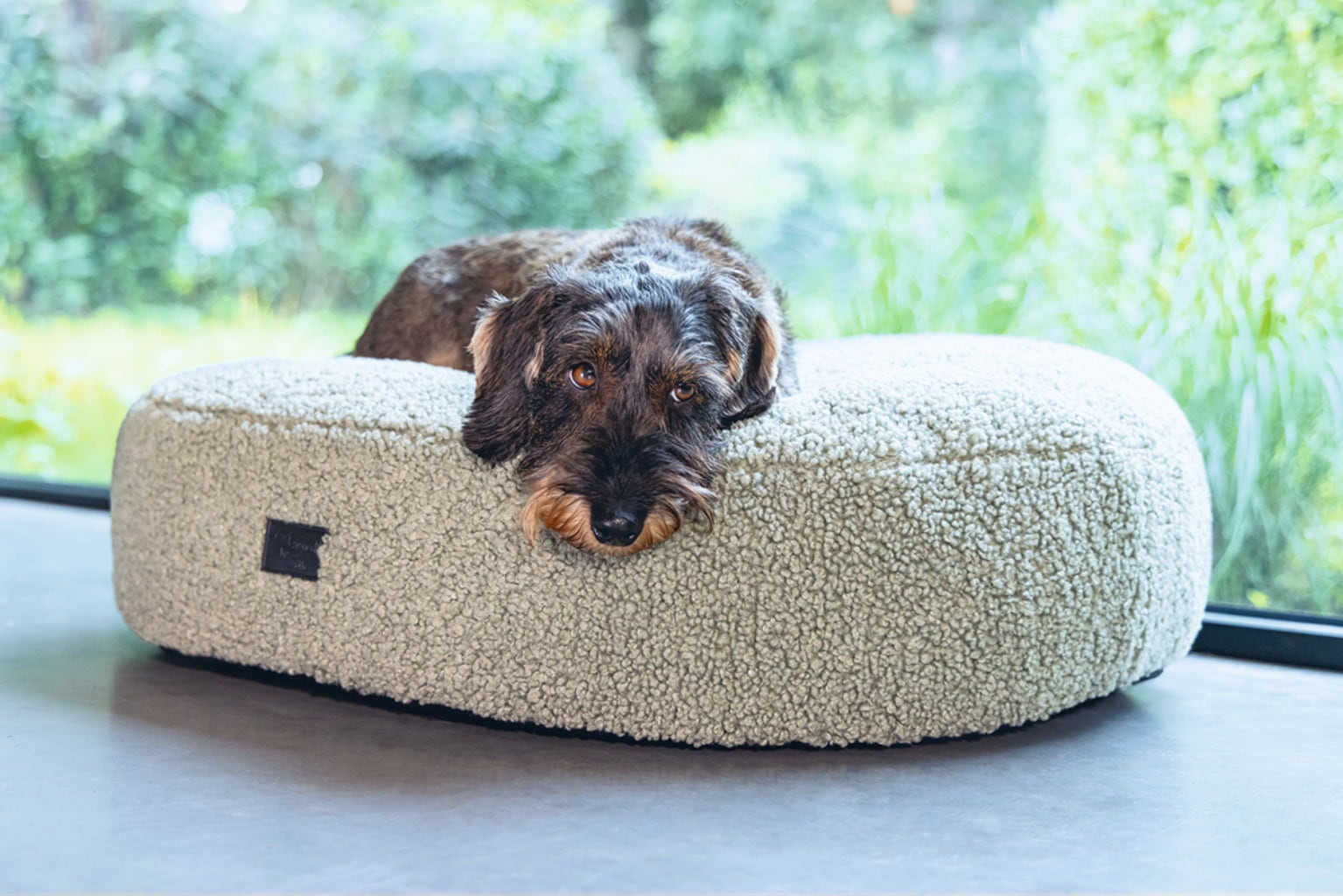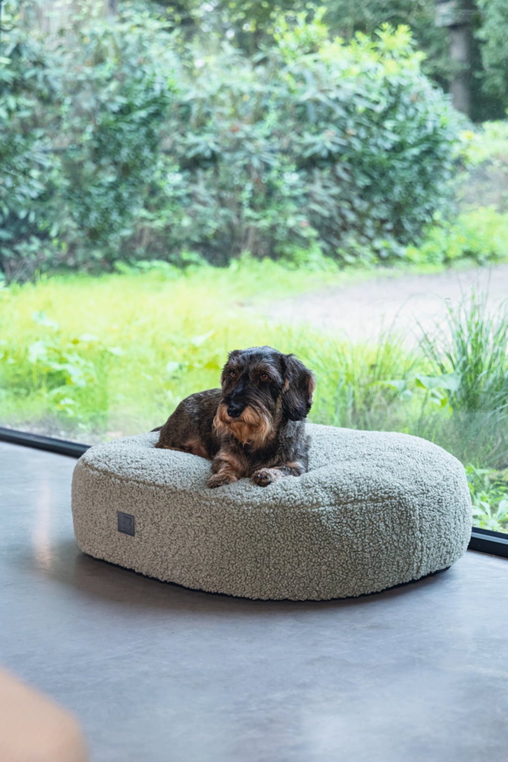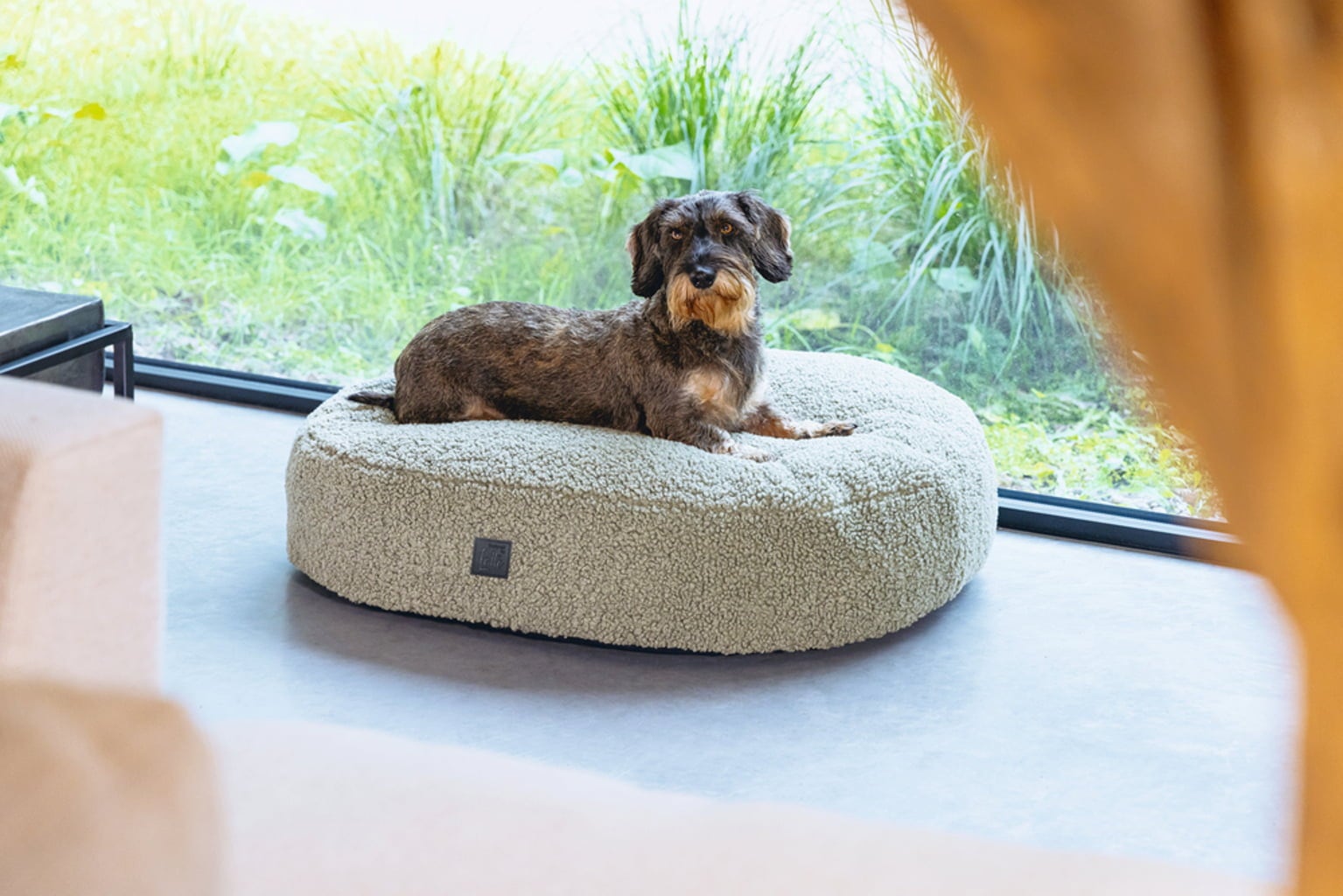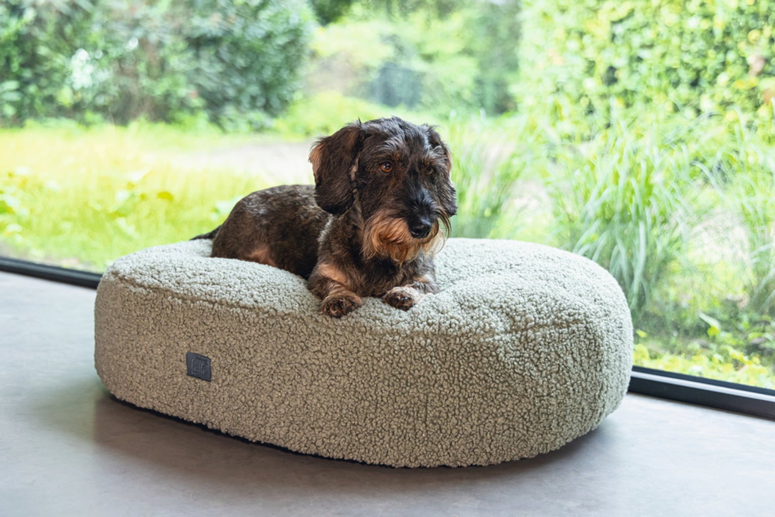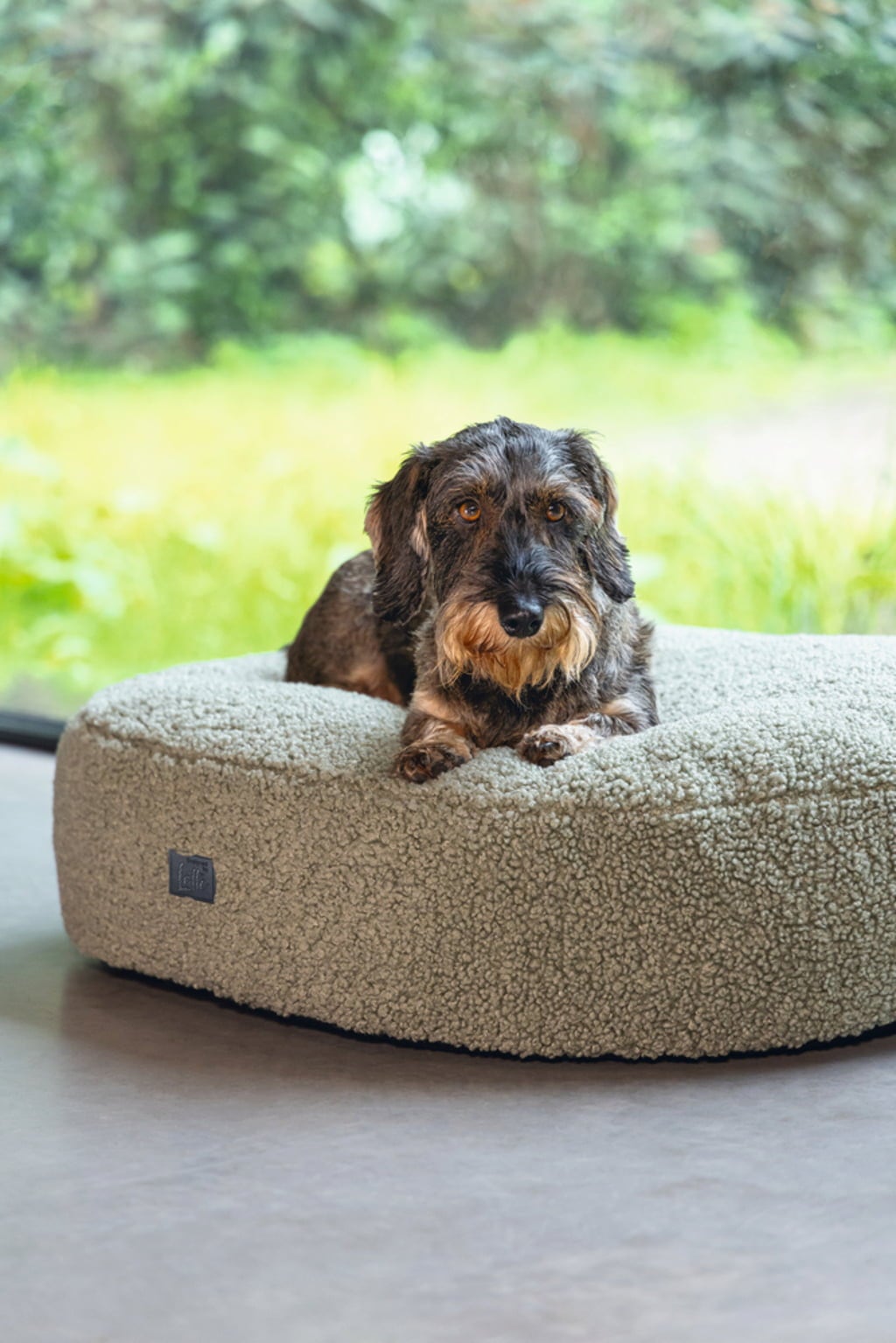 With its soft cover and oval shape, this cushion in gentle green invites cuddling and relaxation. Its modern design ensures it blends harmoniously with a variety of interior styles, pleasing both dogs and humans alike.