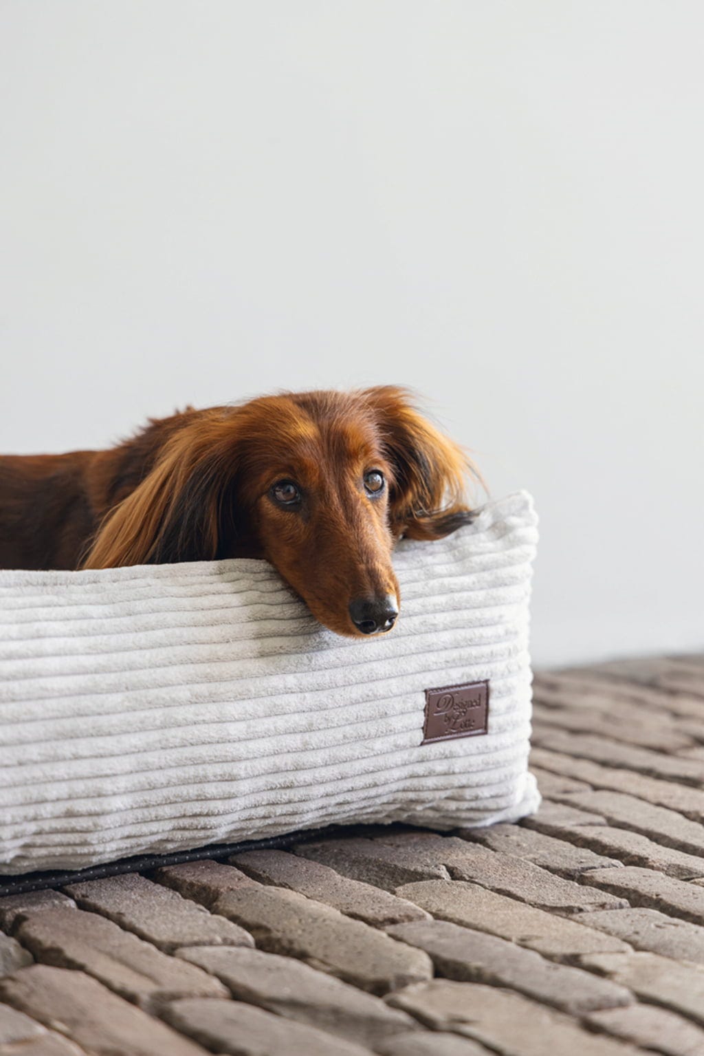 This wonderfully comfortable lounger in stylish light grey impresses with its modern design, making it a distinctive accessory for every dog household. The raised edges offer your pet exceptional comfort, ensuring that this bed will undoubtedly become their new favourite spot.