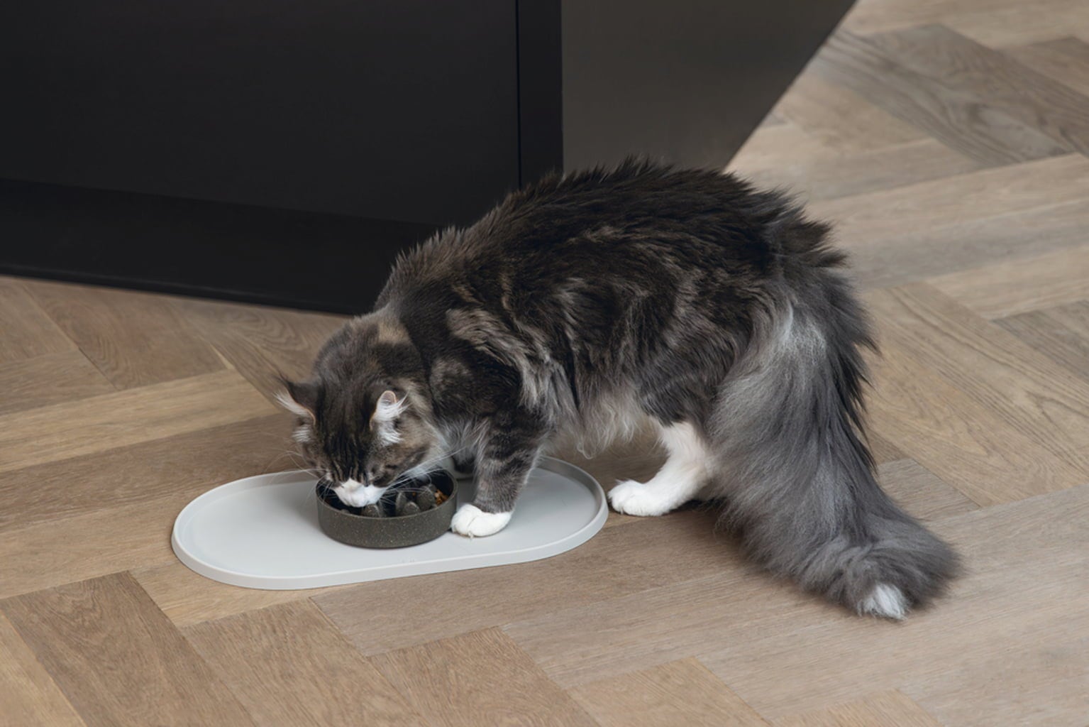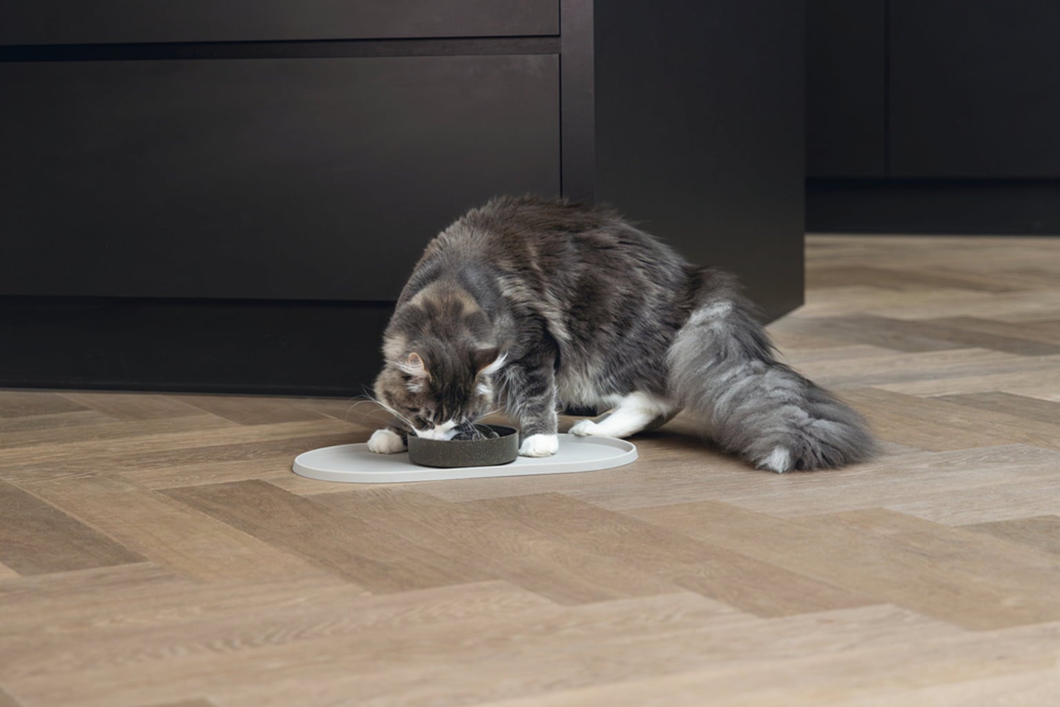This chic silicone placemat looks elegant and effectively protects floors from spilled water, pet food, and resultant stains. Simply place your pet's food and water bowls on it, and your floor stays clean.