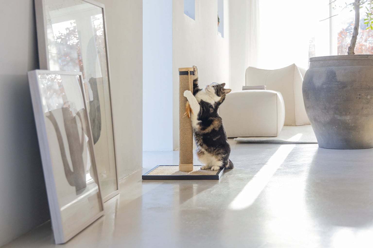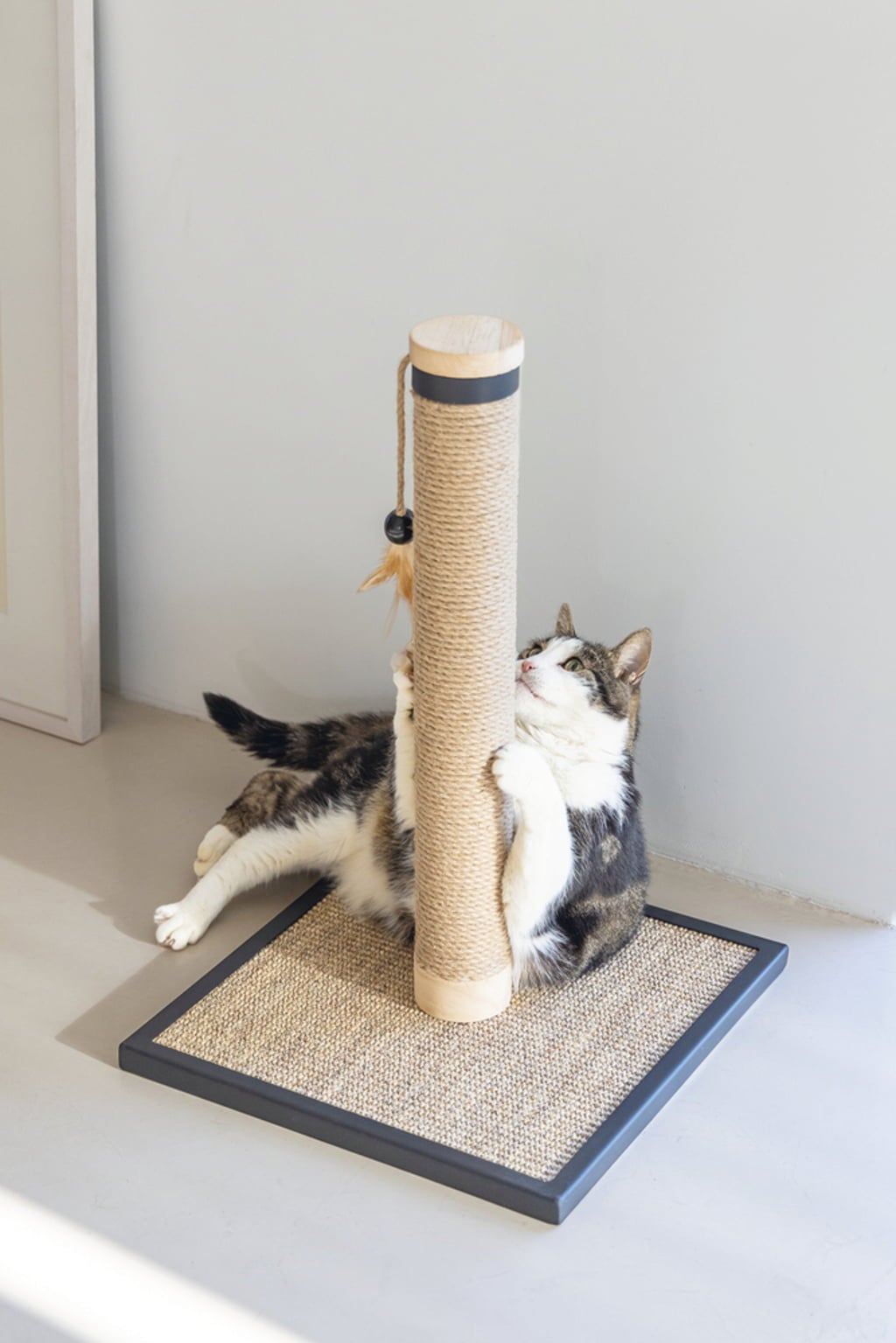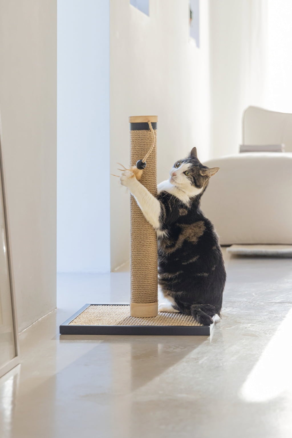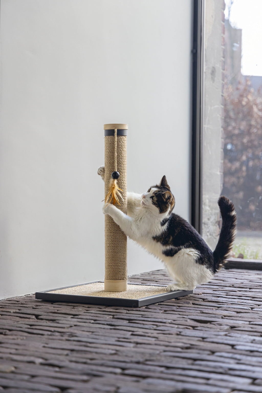 Simple yet full of fun - this scratching post offers your cat engaging entertainment and suitable activity. The scratch mat and scratching column are perfect for sharpening claws and provide both horizontal and vertical scratching options. The integrated feather ball ensures extra playtime fun. What more could a cat's heart desire?