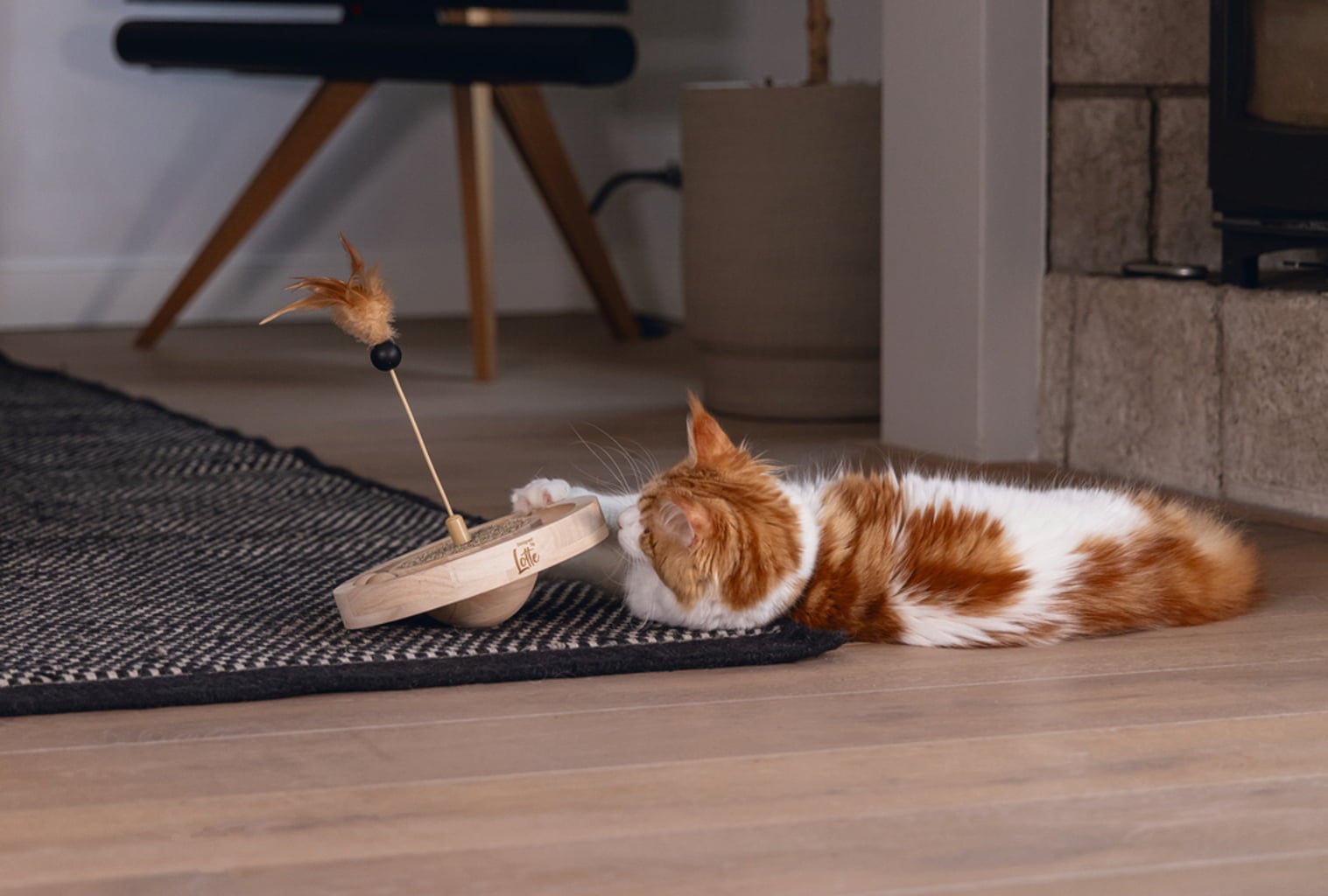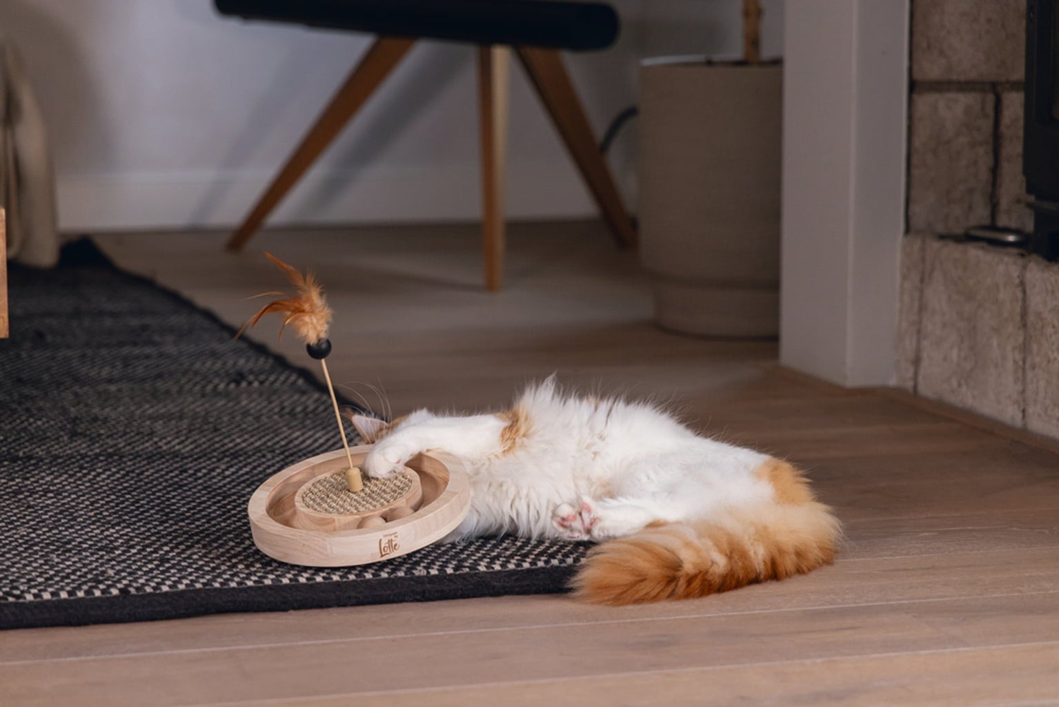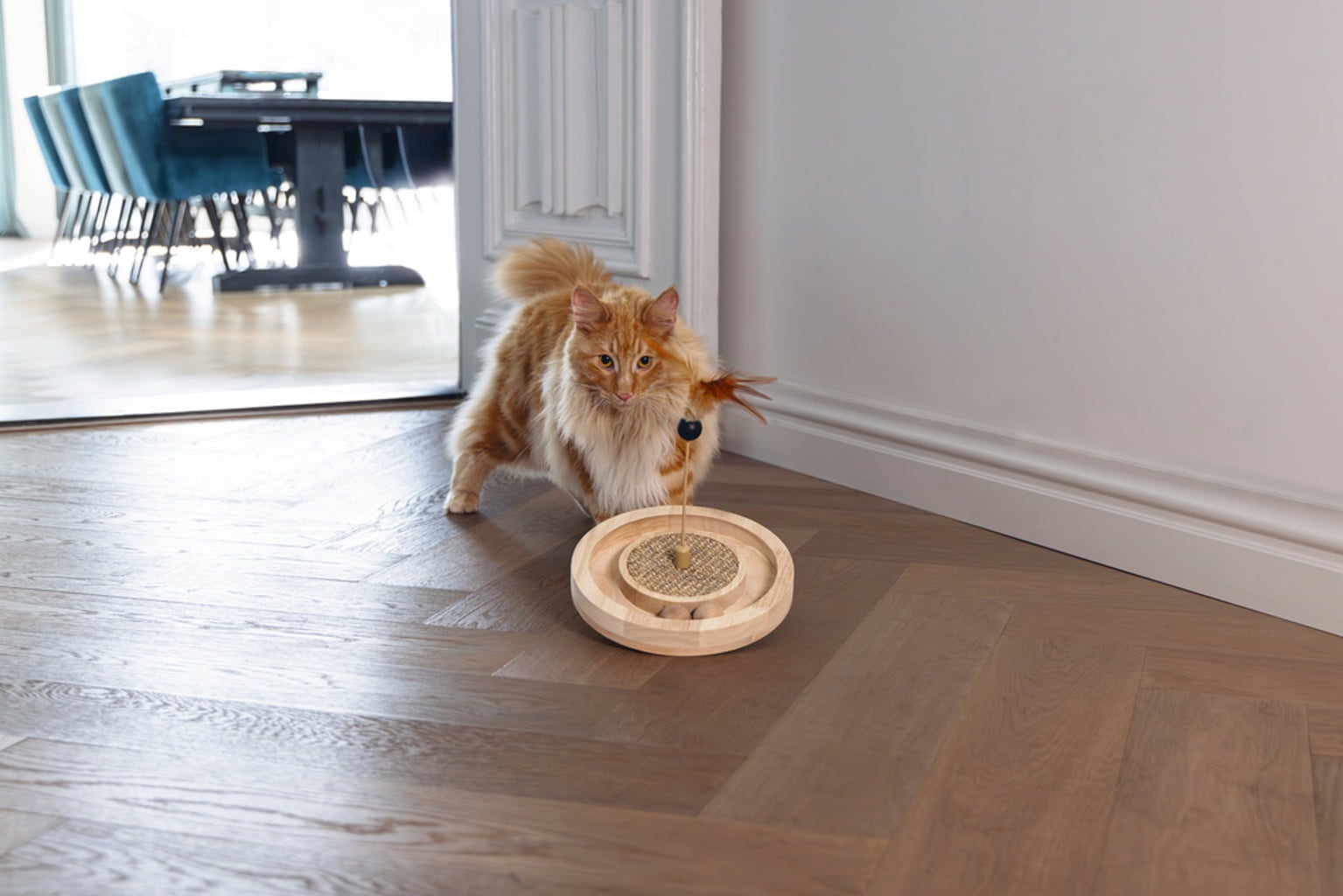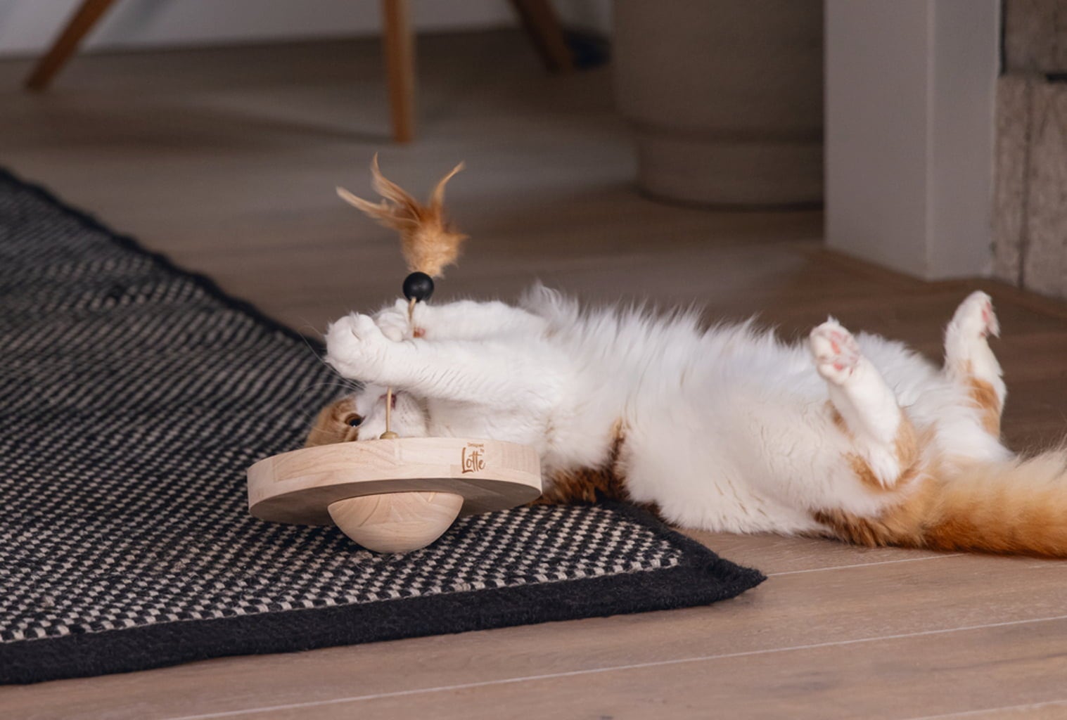 It moves, it spins, and it is simply incredibly fun! This high-quality cat toy with a fun wobble effect, integrated play balls, and a scratching mat is the perfect diversion for your cat, providing hours of entertainment.