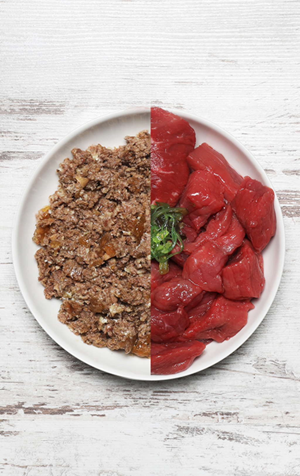 For a balanced meal, the rich pure meat varieties are mixed with Organic Greens or Organic Reds and refined with Natural Gold organic oil blend.