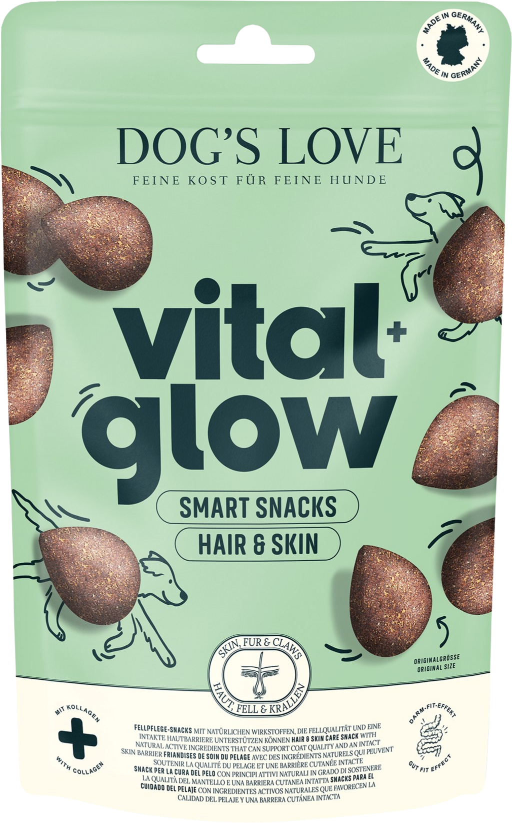 The Vital + Glow Smart Snacks are delicious doggie treats that also provide excellent support for your canine friend's coat. The treats contain omega-3 from microalgae, natural B vitamins and beta-glucan. They are suitable for dogs of all sizes from 6 months of age onwards.