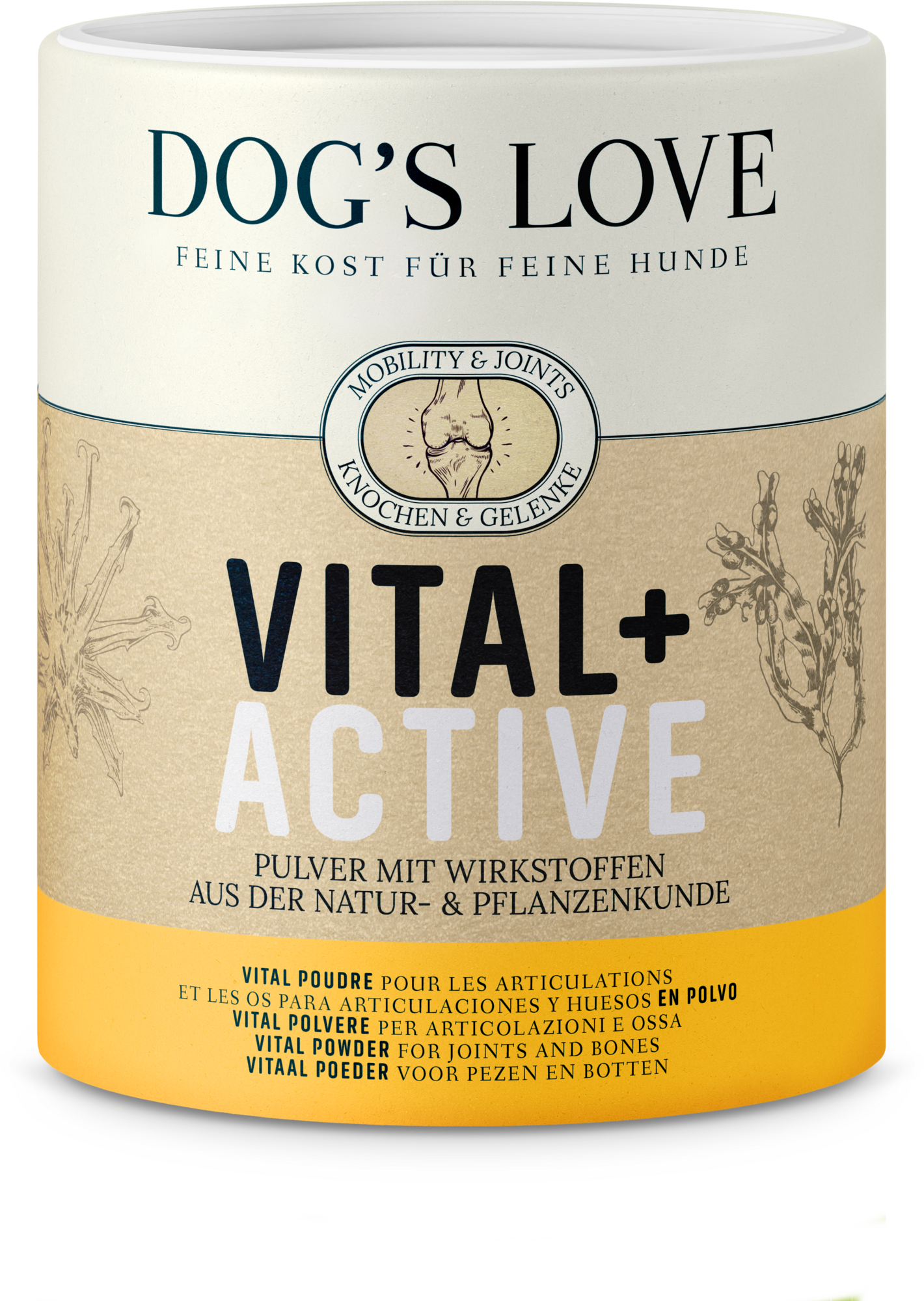 This valuable Vital Active Powder by Dog's Love is a nutritional supplement that can support the joints and bones of dogs. The powder contains premium active ingredients from nature and herbal medicine and excludes the addition of gluten, sugar, lactose, purines, cholesterol, and artificial colourings and flavourings.