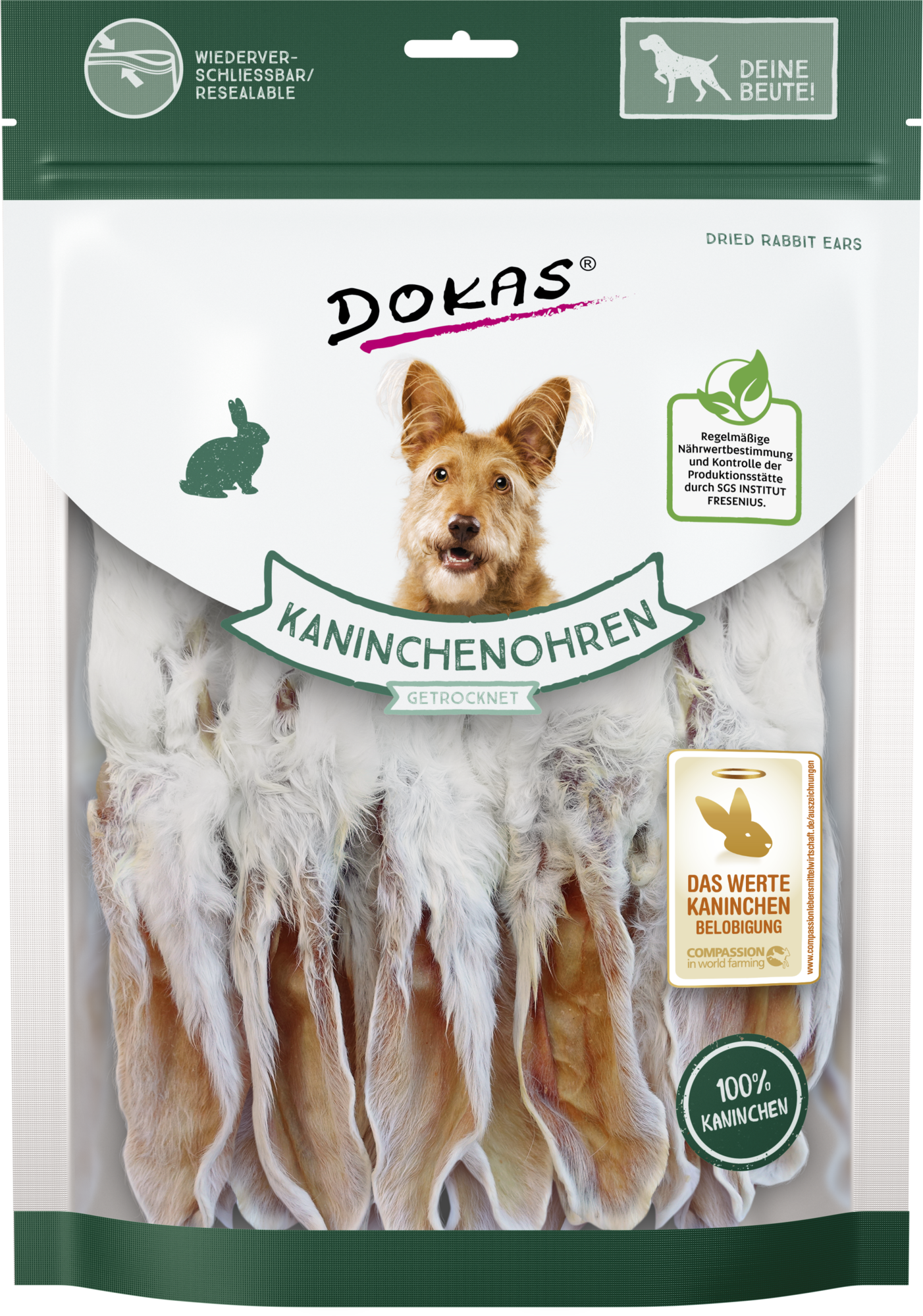 The rabbit ears with fur by Dokas offer your dog an authentic pet food experience. A wonderful chewing fun that is also suitable for the BARF method.
