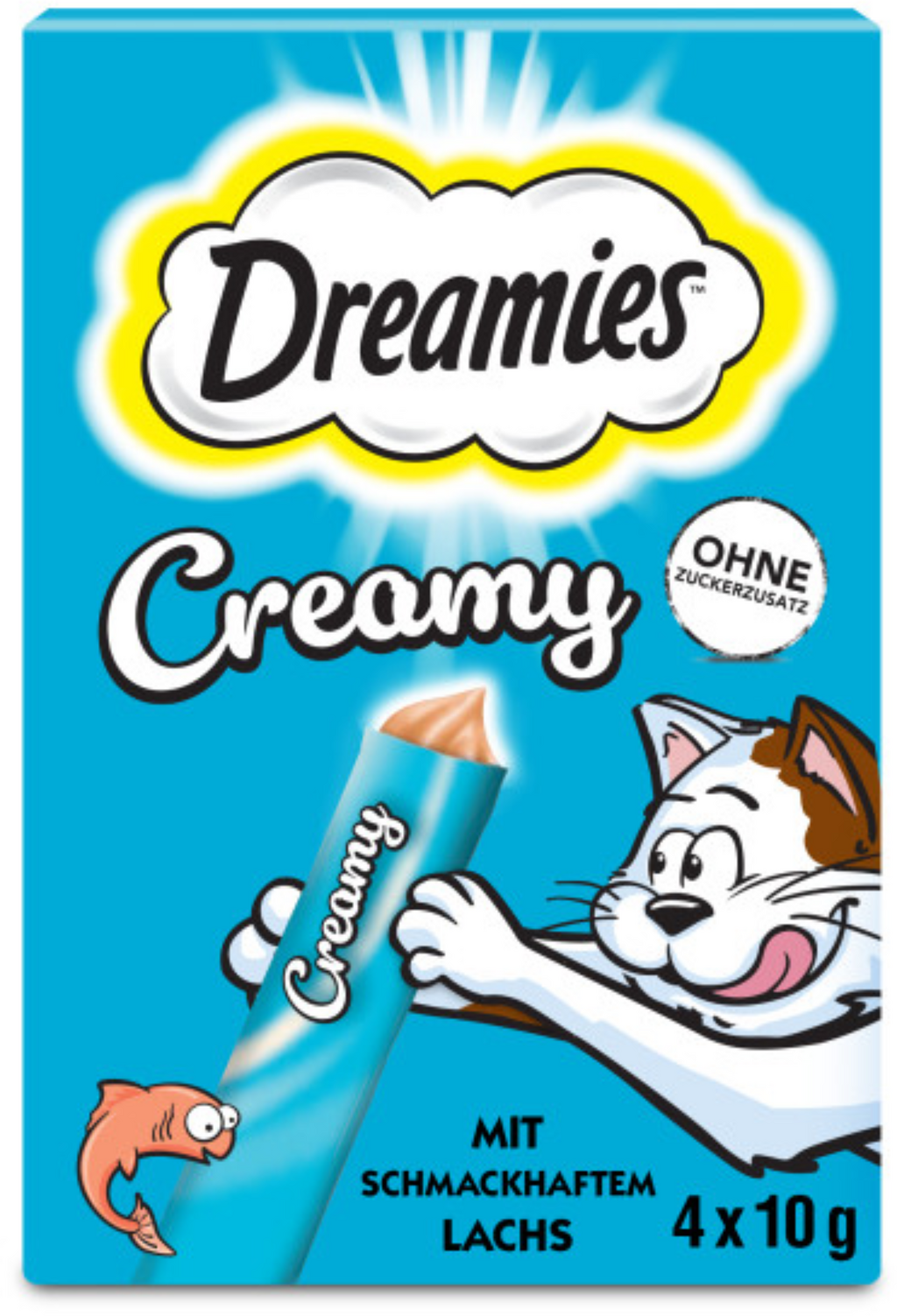 English reviews written for Dreamies Creamy snack with salmon 4x10g