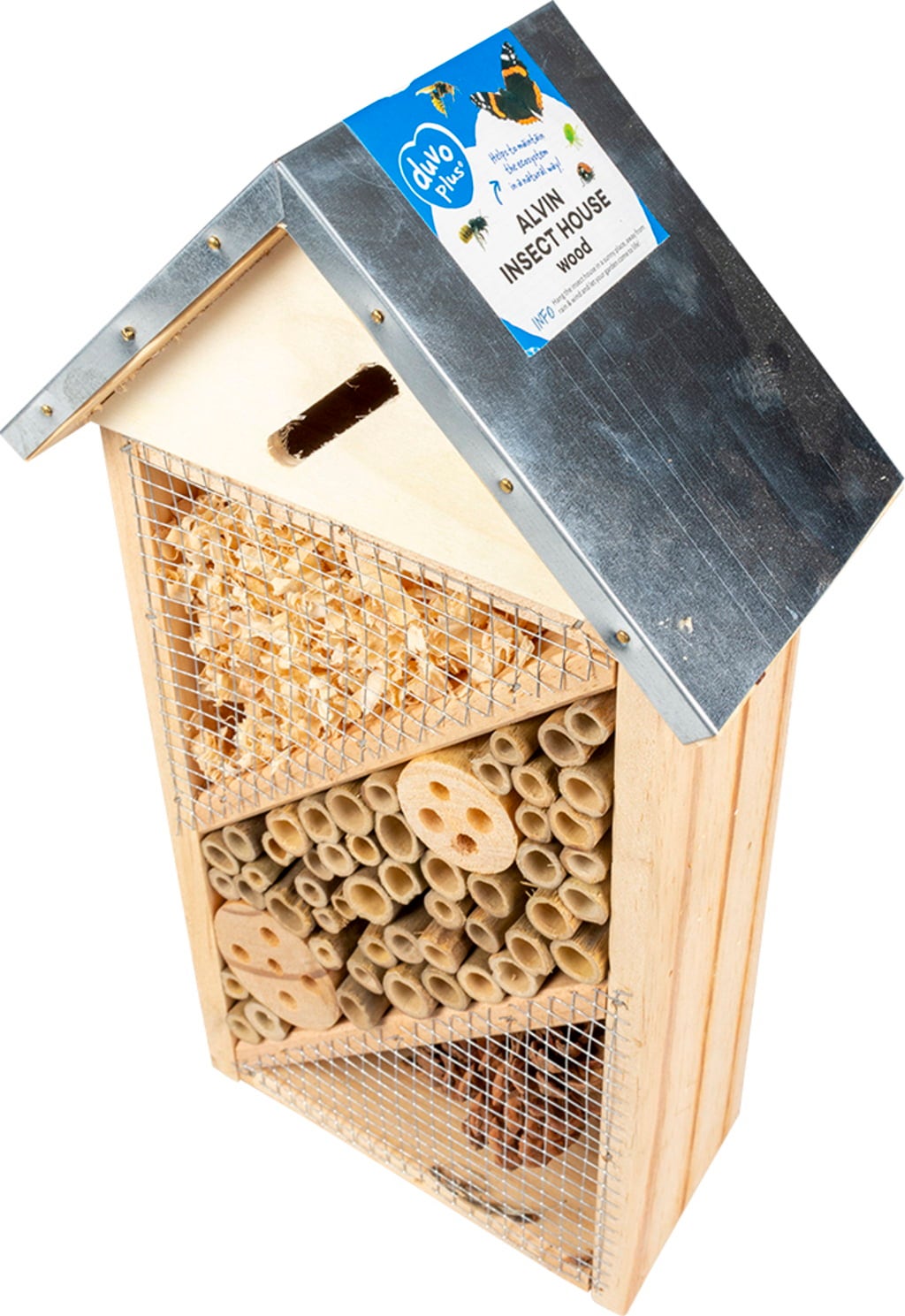 Made of wood, the Alvin insect house by duvoplus is a beautiful insect hotel that breathes life into any garden! The roofed wooden house protects your garden's beneficial insects from rain and wind and also serves as the perfect retreat for hibernation.
