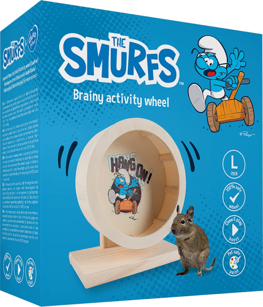 The running wheel is a great way to keep your pet healthy and busy while playing. The running wheel stimulates the natural gnawing instinct and contributes to healthy teeth. Rodents' teeth are constantly growing, and chewing on the wheel helps them to control the growth of their teeth. The wheel is made of high-quality wood and printed with a fun design. It is an essential toy for your rodent and should not be missing from its cage.