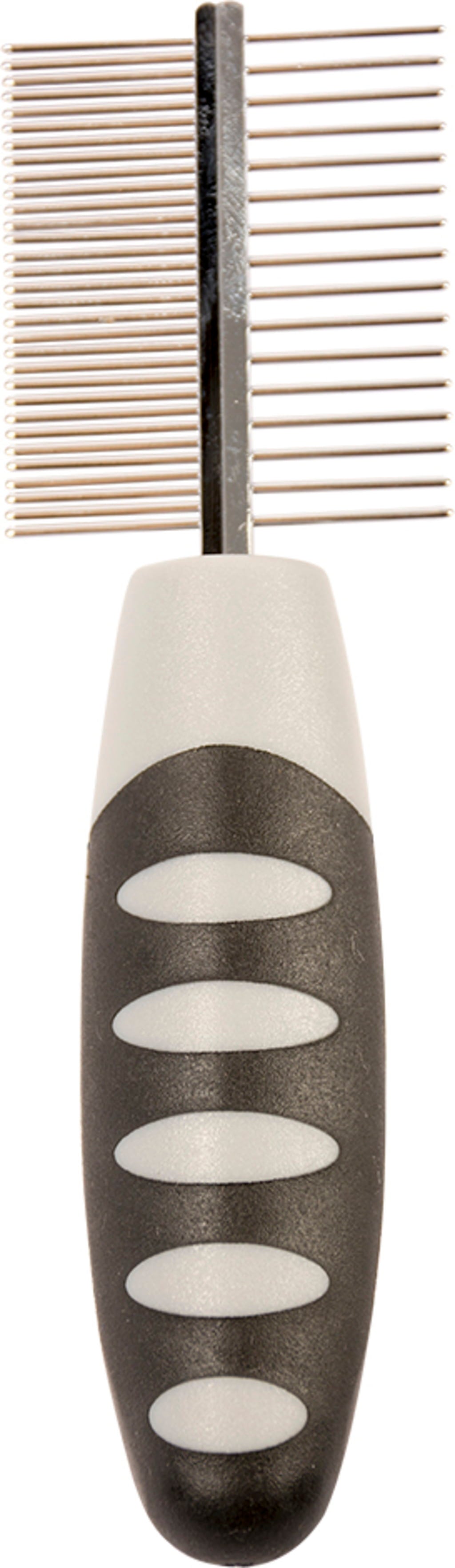 The detangling comb has two brushes: the side with wide-spaced teeth has 13 teeth and can be used to detangle knots in the coat. The side with the closely spaced teeth has 31 teeth and can be used to check if the work is done.