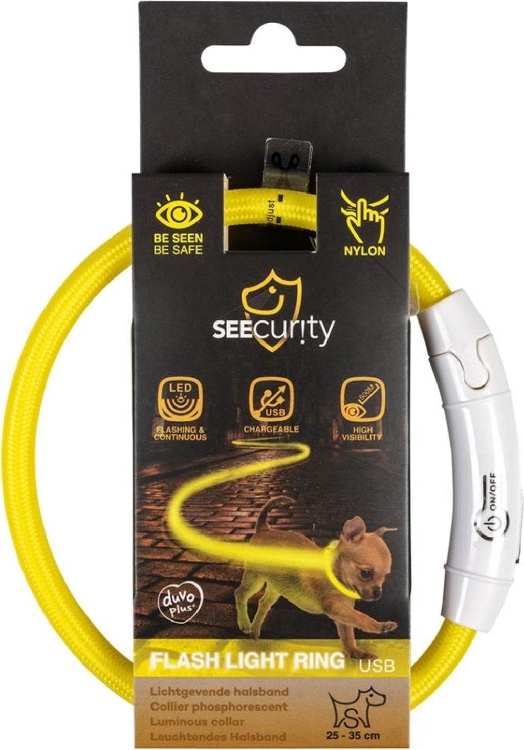 Duvoplus Flash Light Collar USB nylon yellow, S