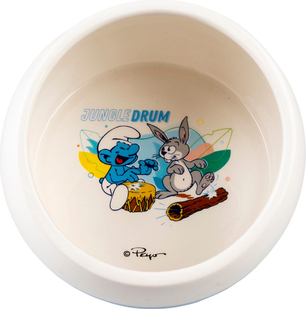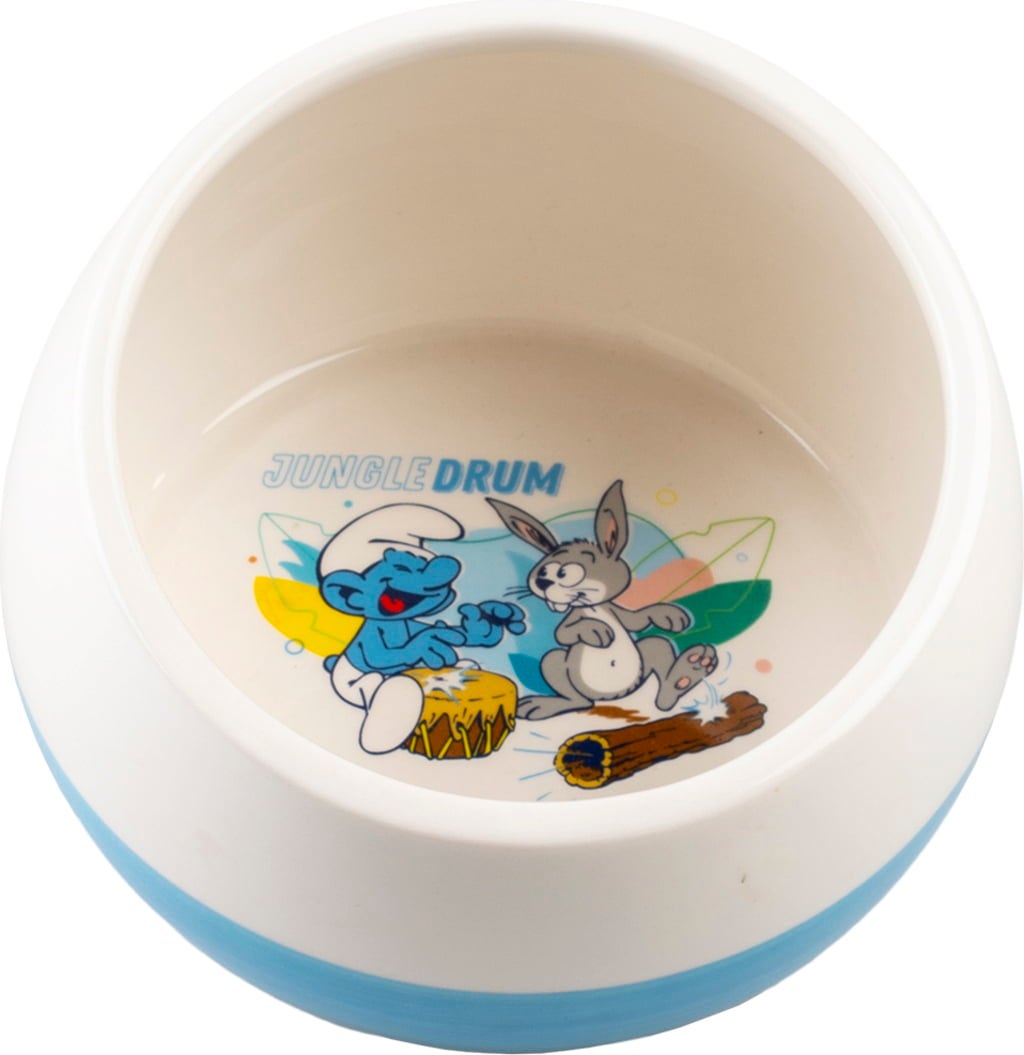 Inspired by the characters and adventures of the new Smurfs series, this ceramic feeding bowl is a great example of a fun and playful product line. The charming design featuring Harmony Smurf and his friend adds a splash of colour to your small animal’s home. Made from durable, fired stoneware, this bowl is perfect for both dry and wet pet food. The high-quality enamel coating makes the bowl leak-proof and very easy to clean. The cute design ensures your pet can enjoy mealtimes the Smurfy way.
