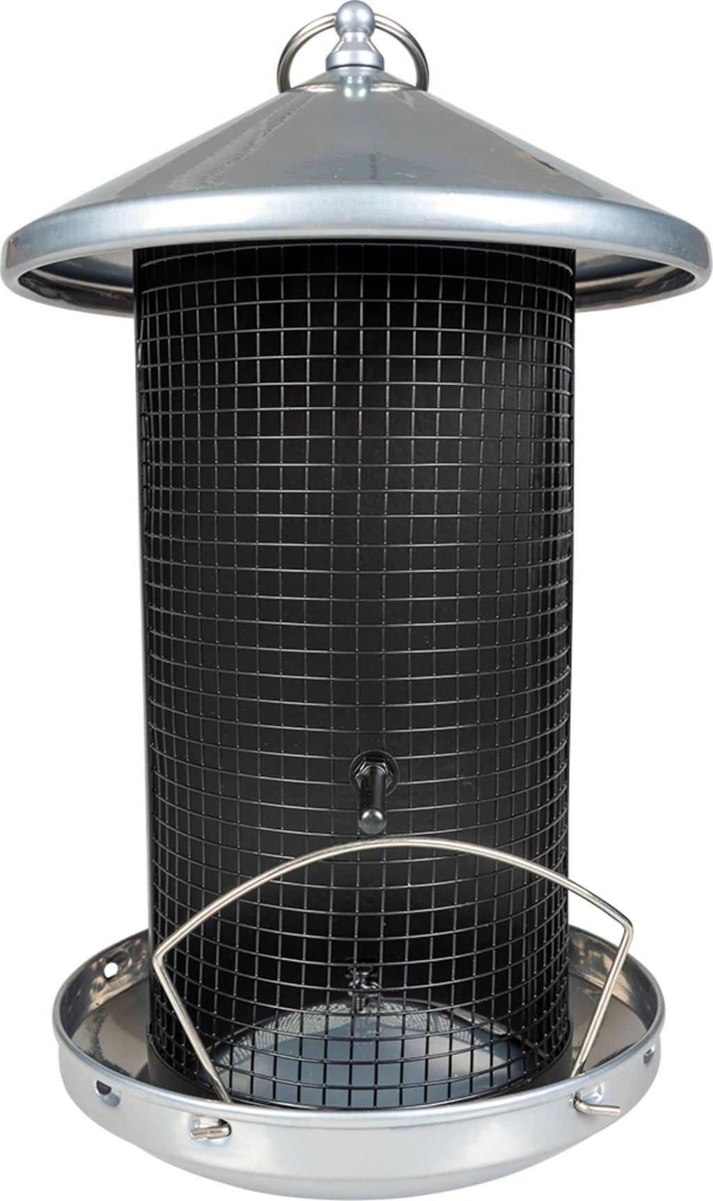 The Metal Combi Feed Dispenser by duvoplus is a robust feeder silo made of sturdy metal - perfect for feeding your garden birds. The two-part feeder allows you to put out both seeds and nuts for the birds. It is also equipped with two comfortable perches where birds can sit as they eat or rest. The practical ring makes it easy to hang up the feeder anywhere.