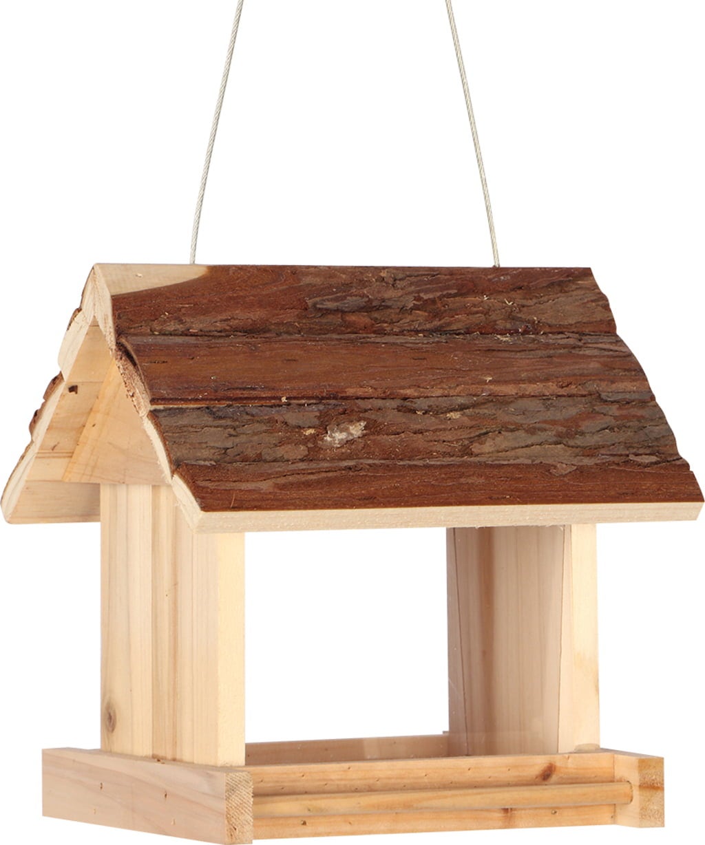 While the charming Texas bird feeder from duvoplus adds a natural touch to your garden, it also attracts birds to your garden by providing them with food! The wooden construction is robust and weatherproof. The bark roof keeps the food dry and protected from wind and rain. The outer walls of the feeder are made of Plexiglas so that birds can easily see the food. It comes with a perch on both sides for birds to rest on. The bird feeder is easy to hang up with the attached cord.
